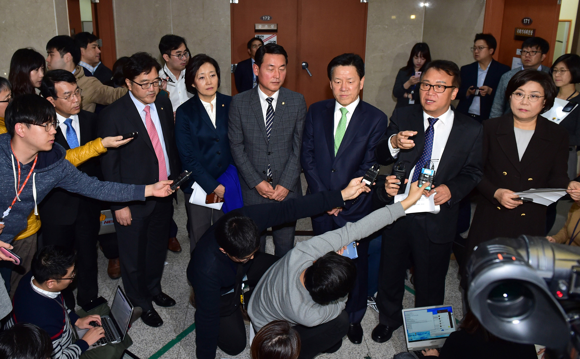| 사진설명 | 여야 의원 14명이 16일 국회 정론관에서 박근혜 대통령의 질서있는 퇴진 절차 등을 논의하기 위한 국회 본회의 또는 전원위원회 소집을 요구 하는 기자회견을 갖고 있다. 이 제안에는 새누리당 김재경·이종구·이혜훈·정병국·황영철, 더불어민주당 민병두·박영선·변재일·송영길·우원식, 국민의당 박주현·유성엽·주승용, 정의당 김종대 의원 등이 참여했다. |