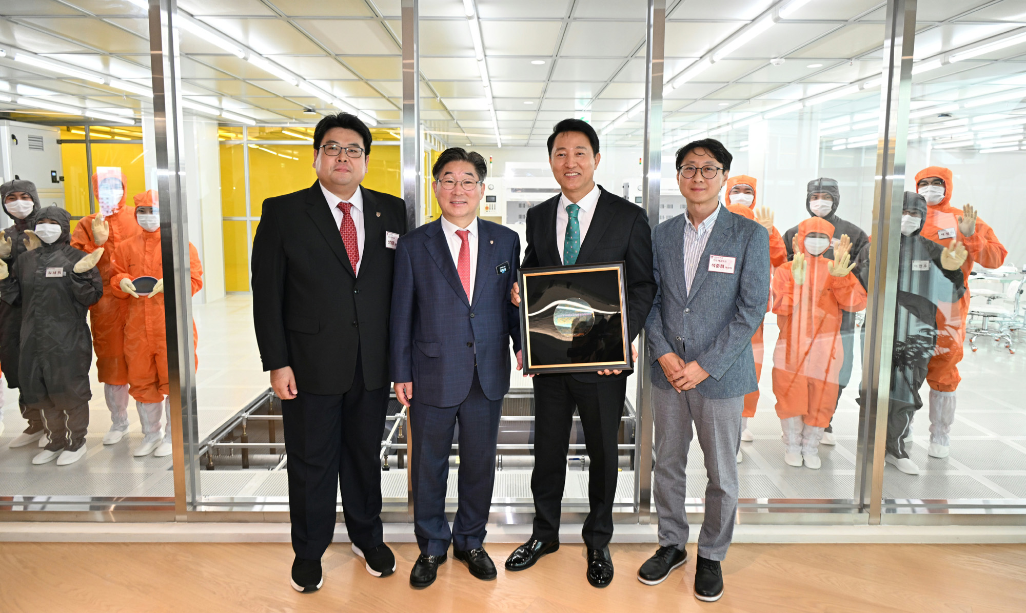 오세훈 서울시장이 25일 오후 고려대학교 미래융합기술관 대강당에서 열리는 '이제는 이공계 전성시대' 포럼 참석에 앞서 정운오IT교양관을 찾아 반도체공학과 FAB실험실을 둘러보고 관계자들과 기념촬영하고 있다. 서울시 제공