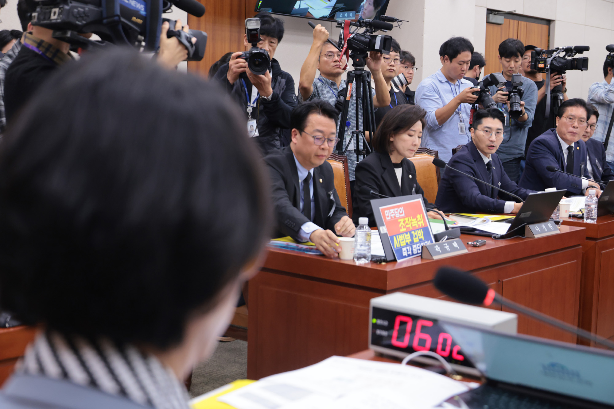 [Eoimage=서울] 이종현 기자 = 13일 오전 국회에서 열린 법제사법위(이하 법사위)의 대법원 국정감사에서 국민의힘 나경원 의원이 회의 진행에 대해 강력히 항의하고 있다. 2025.10.13. eomaster@eoimage.com