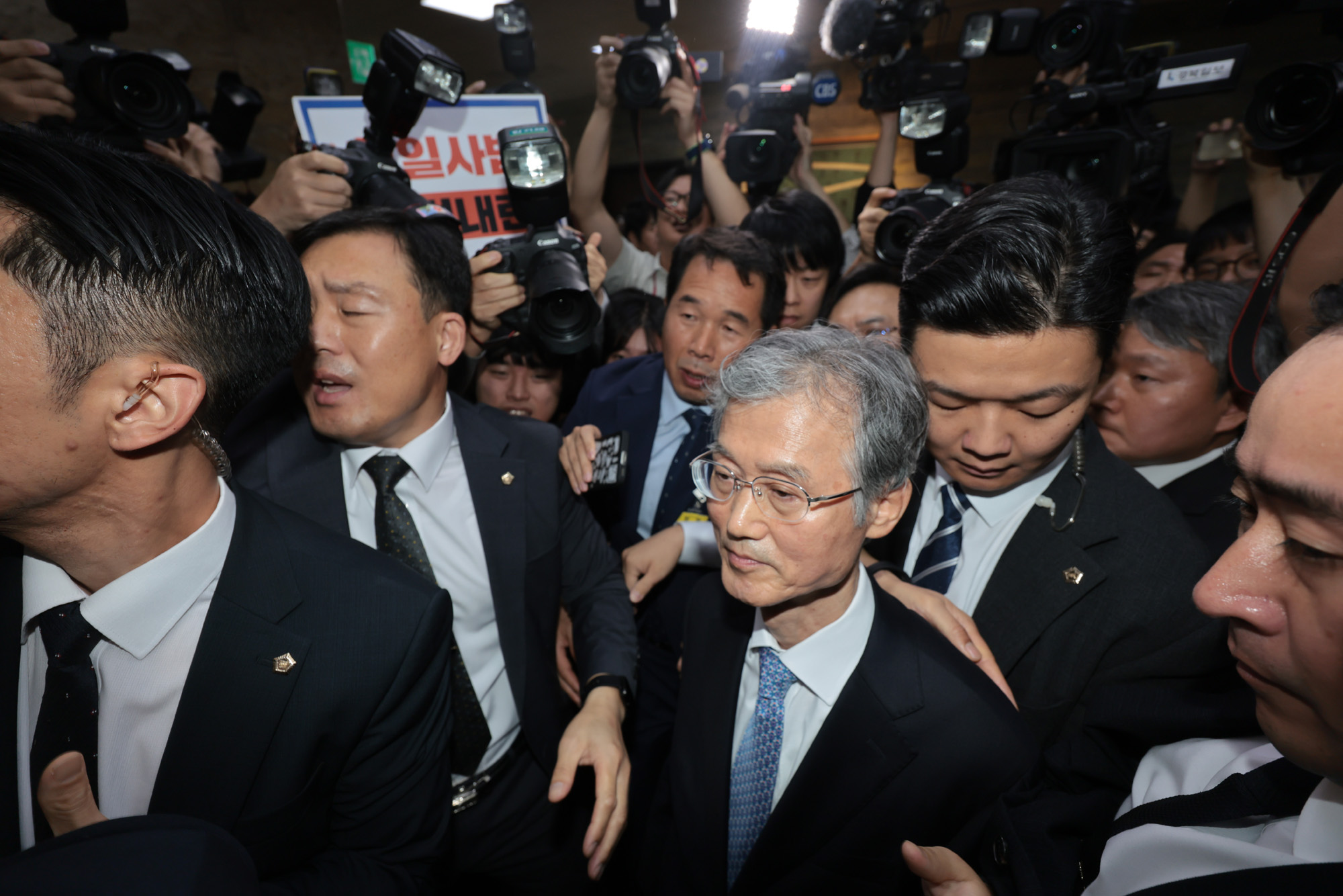[Eoimage=서울] 이종현 기자 = 13일 오전 국회에서 열린 법제사법위(이하 법사위)의 대법원 국정감사에 조희대 대법원장이 이석해 자리를 떠나고 있다. 2025.10.13. eomaster@eoimage.com