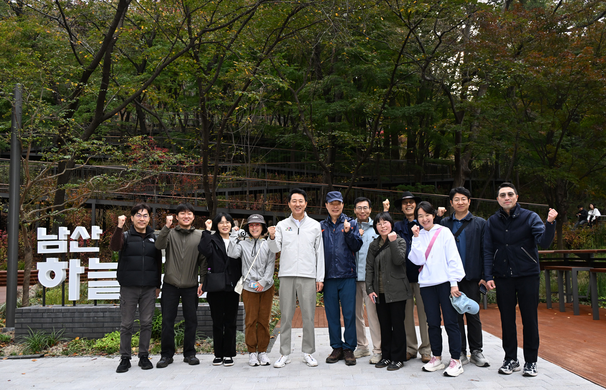 오세훈 서울시장이 26일(일) 아침 7시 30분 도심과 남산을 잇는 무장애산책로 ‘남산 하늘숲길’을 찾아 시민들과 함께 가을 남산을 걸으며 편의와 안전을 꼼꼼하게 확인했다. 서울시 제공