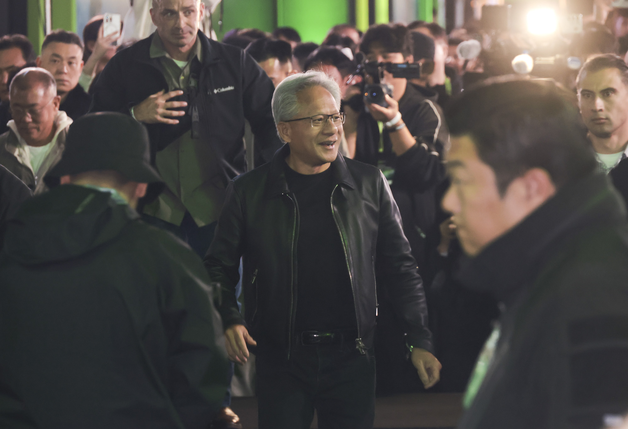 젠슨 황 엔비디아 최고경영자가 30일 오후 서울 강남구 코엑스광장에서 열린 '엔비디아 지포스 게이머 페스티벌' 주요 파트너 회사 부스를 둘러보고 있다.