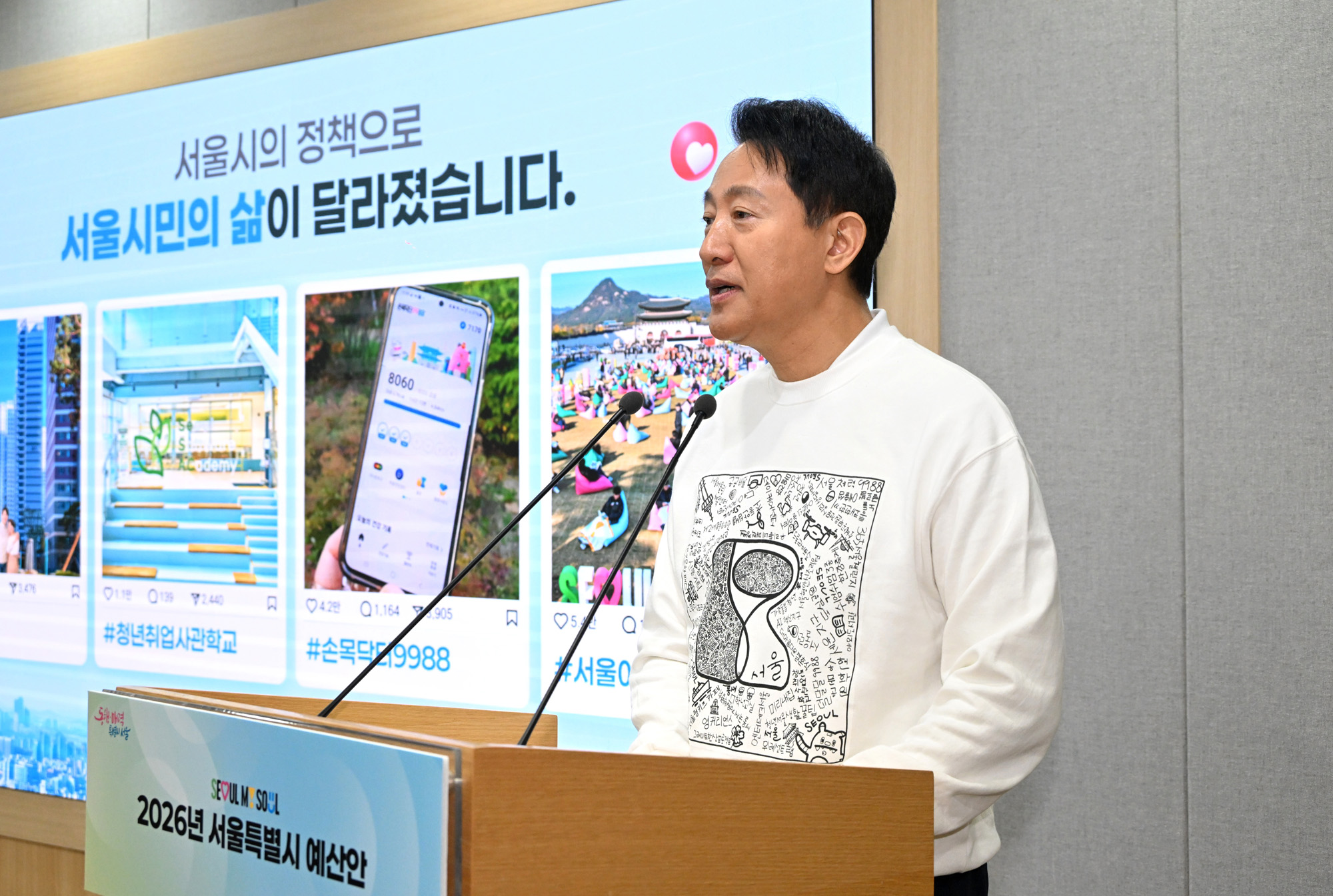 오세훈 서울시장이 30일 서울시청 브리핑룸에서 2026년 서울특별시 예산안 기자설명회를 하고 있다. 서울시 제공