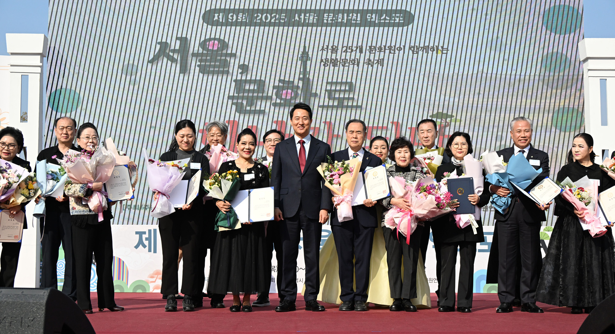 오세훈 서울시장은 6일(목) 13시 30분 광화문광장 놀이마당에서 열린 ‘제9회 2025 서울시 문화원엑스포’에 참석해 지역문화 육성·발전에 기여한 유공 시민에게 표창을 수여하고, 행사 개최를 축하했다. 서울시 제공