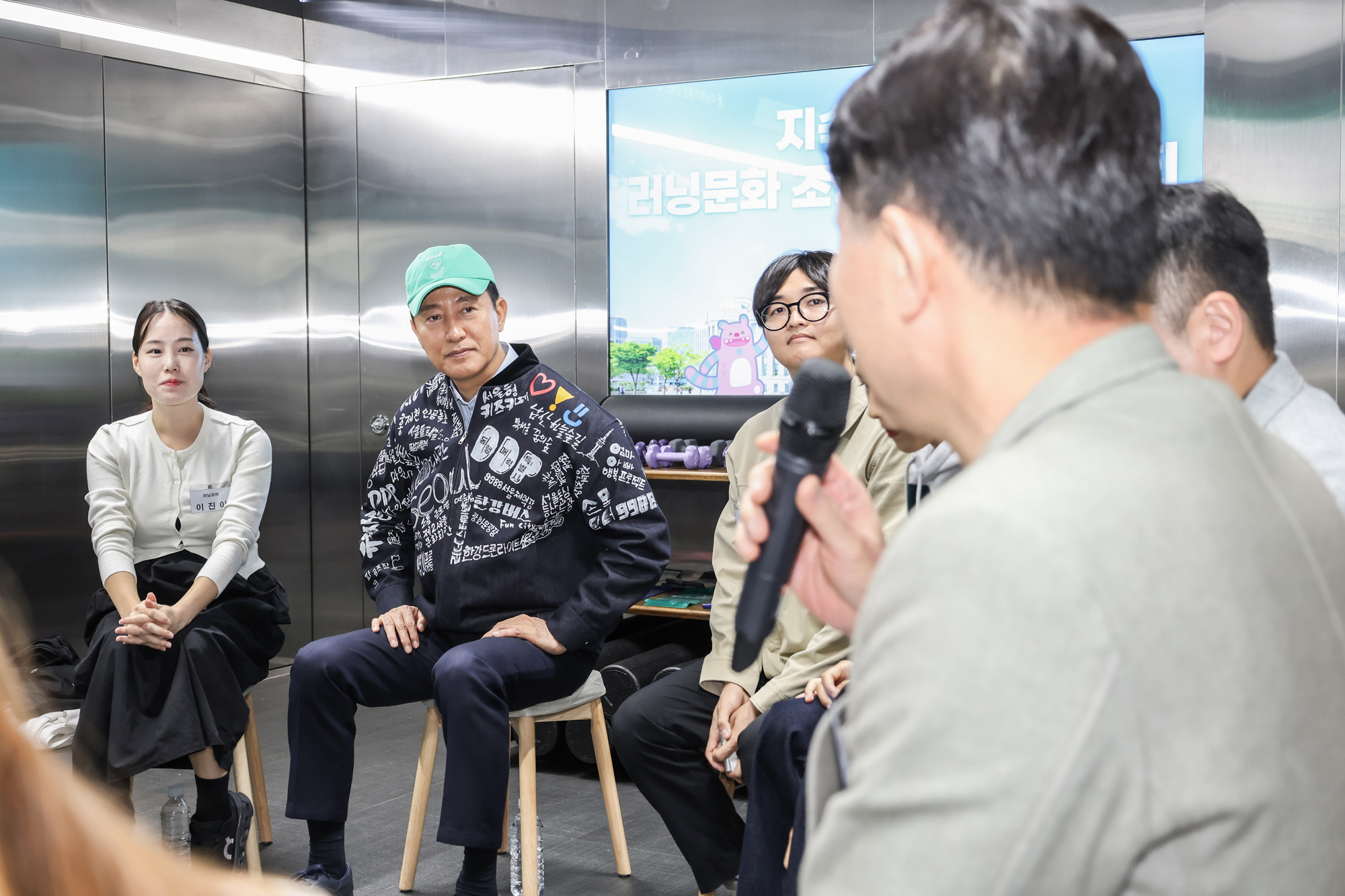 오세훈 서울시장은 10일(월) 오후 2시 지하철 여의나루역(5호선) ‘러너스테이션’에서 러닝 코치?러닝 분야 크리에이터? 러닝기업 등 관계자들과 간담회를 갖고 건전하고 지속가능한 러닝 문화 정착 방안을 논의했다 서울시 제공