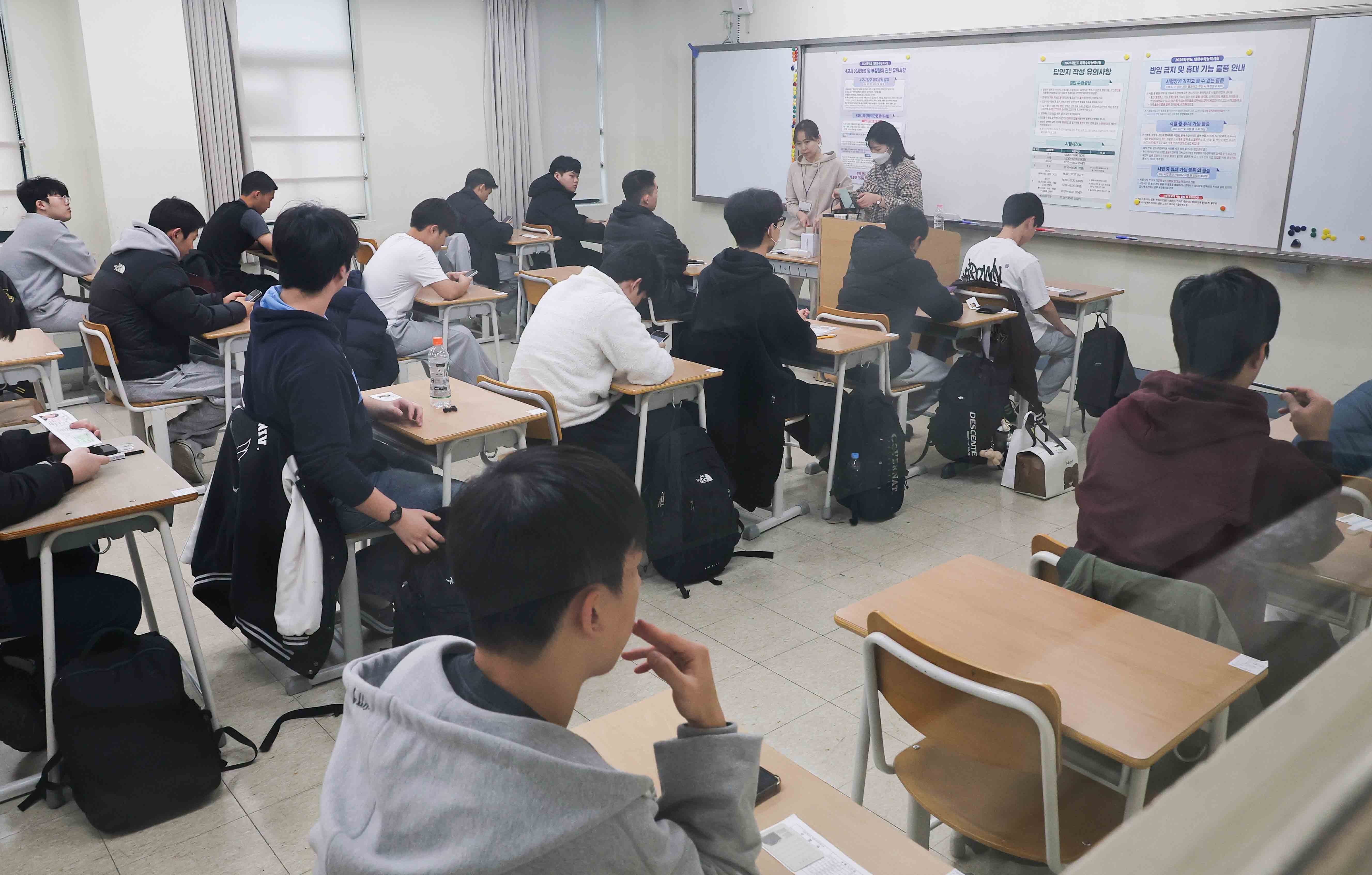 2026학년도 대학수학능력시험이 실시된 13일 오전 서울 용산구 용산고등학교에서 수험생들이 시험 준비를 하고 있다.