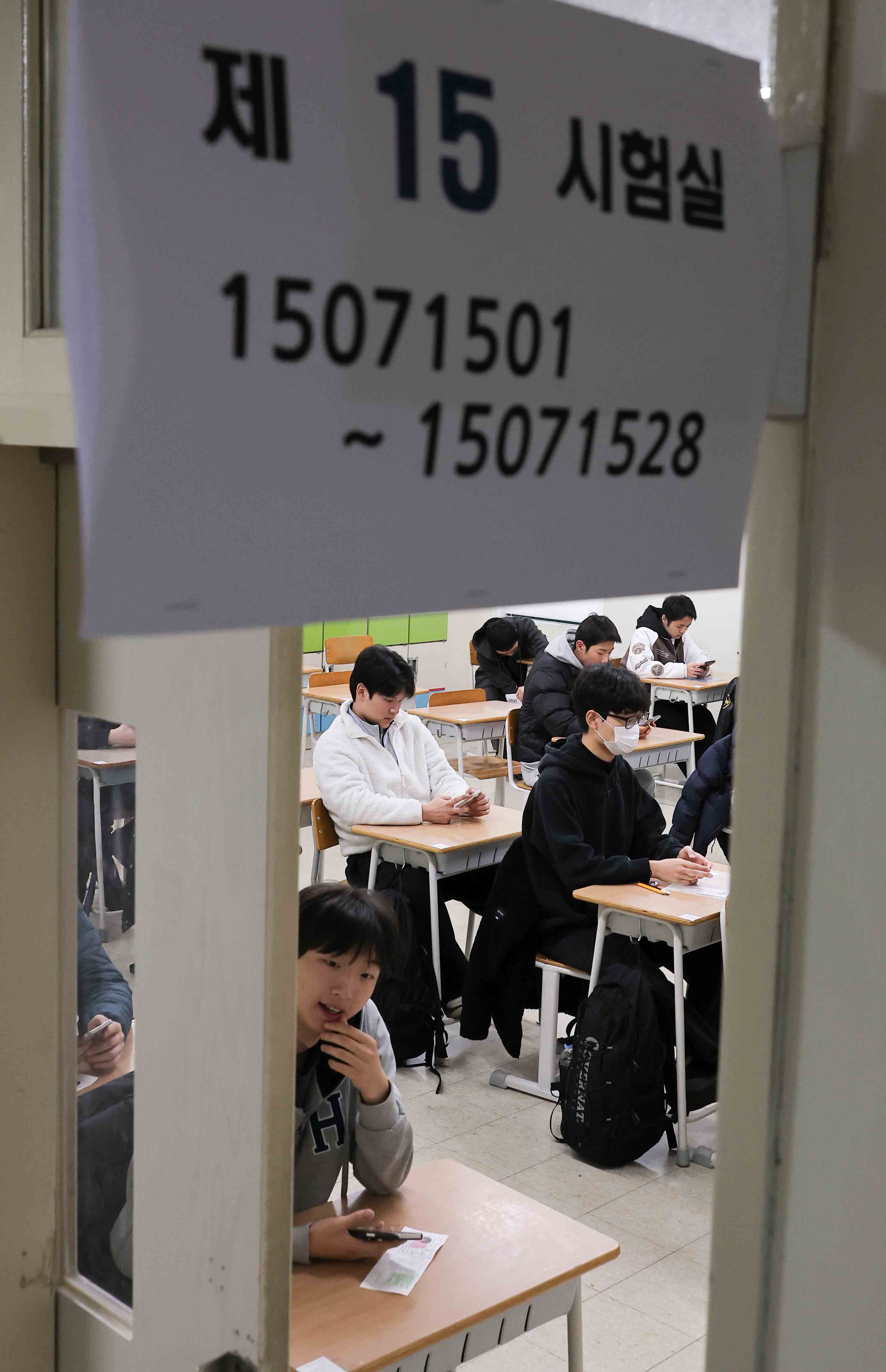 2026학년도 대학수학능력시험이 실시된 13일 오전 서울 용산구 용산고등학교에서 수험생들이 시험 준비를 하고 있다.