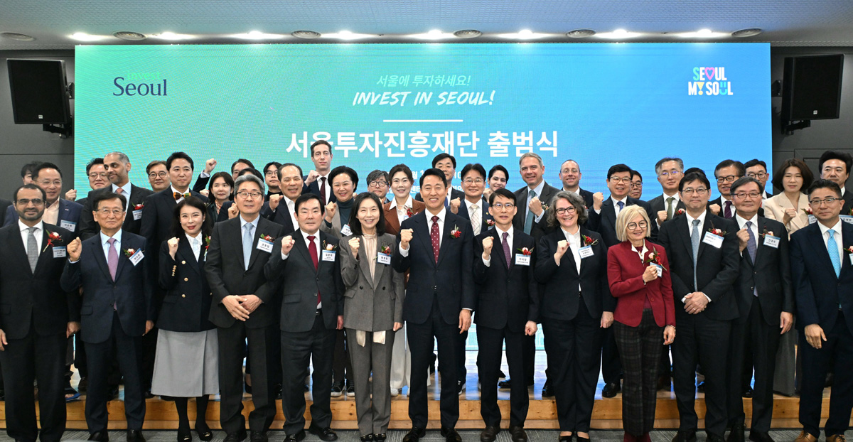 13일(목) 오전 서울 종로구 서울글로벌센터빌딩에서 열린 서울투자진흥재단 출범식에서 오세훈 서울시장, 이지형 서울투자진흥재단 이사장 등 참석자들이 기념촬영을 하고 있다. 서울시 제공