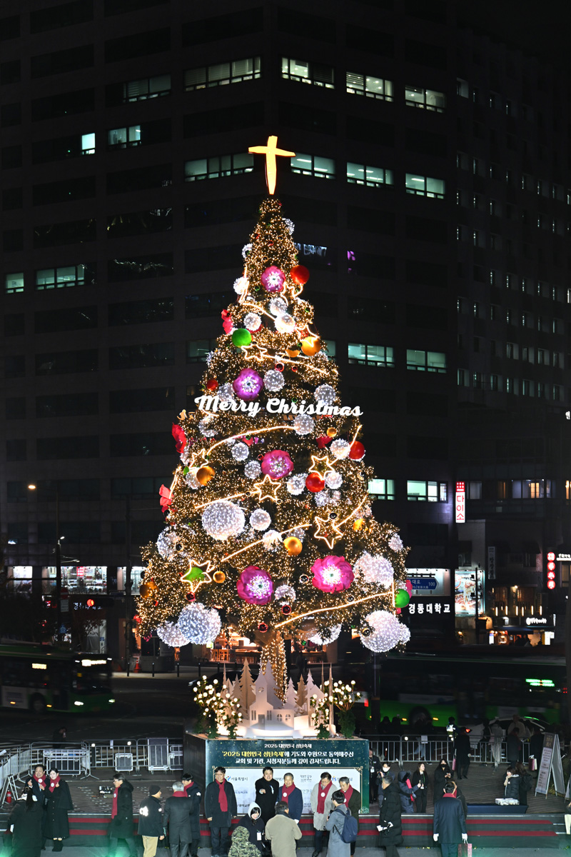 오세훈 서울시장은 17일(월) 오후 7시, 서울광장에서 개최된 서울광장 성탄트리 점등식‘에 참석해 시민의 평안과 평화를 기원하며 성탄트리에 불을 밝혔다. 서울시 제공