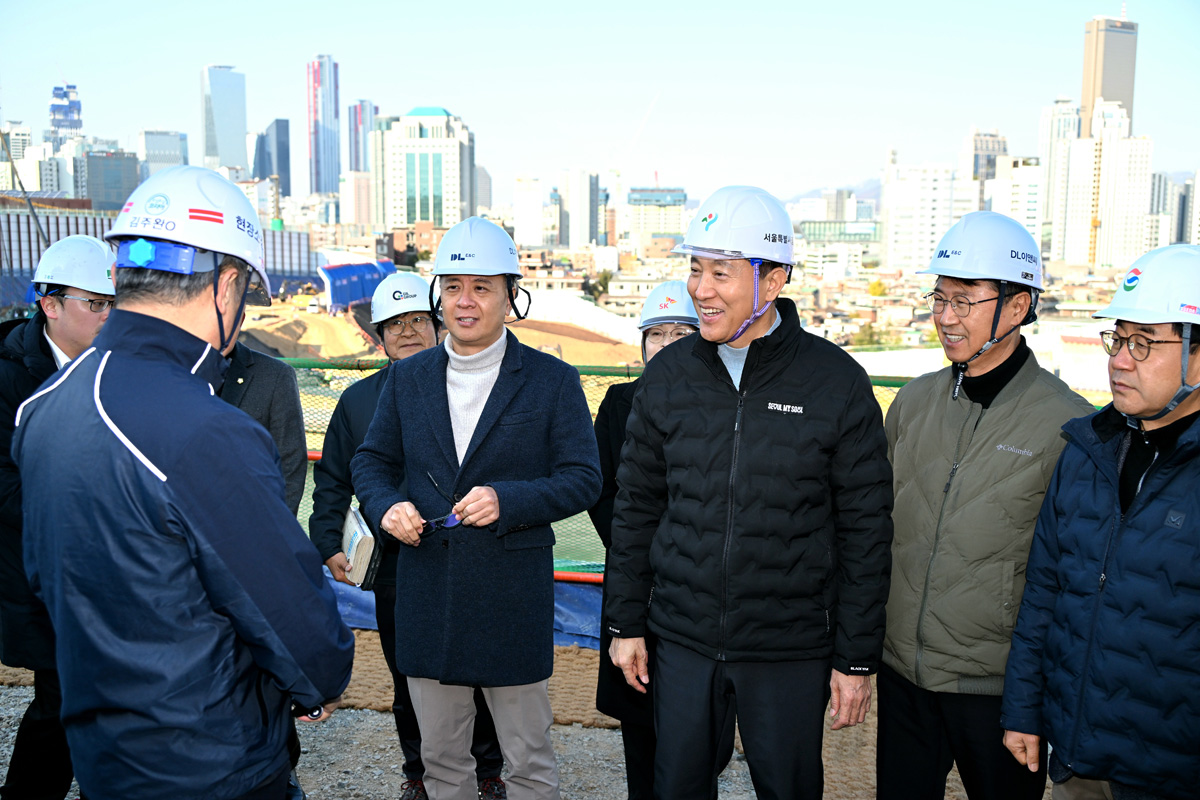 오세훈 서울시장이 19일(수) 동작구 노량진 재정비촉진지구 착공현장(6구역)을 방문해 주민간담회를 열고 주택공급 안정화 계획에 대해 이야기하고 있다. 서울시 제공