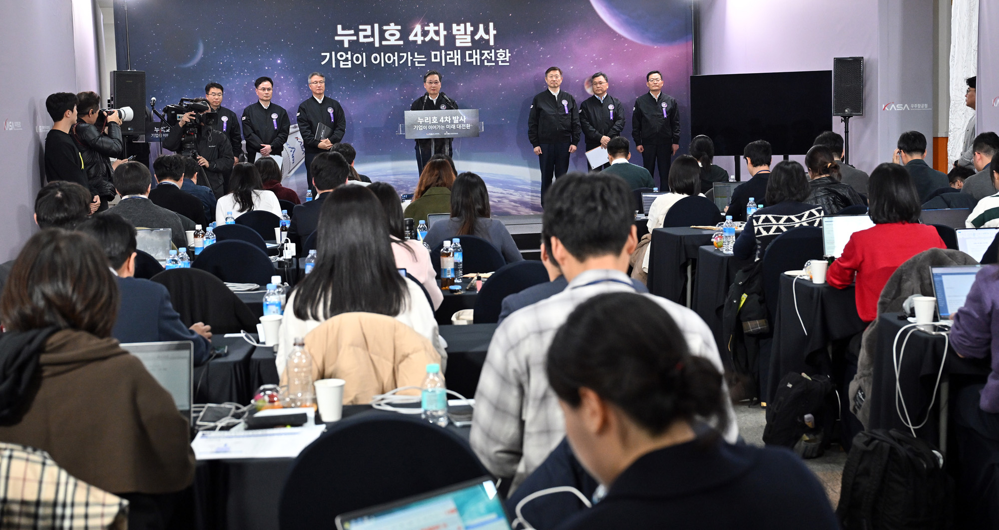 27일 윤영빈 우주항공청장이 누리호 4차 발사 결과를 브리핑하고 있다.
