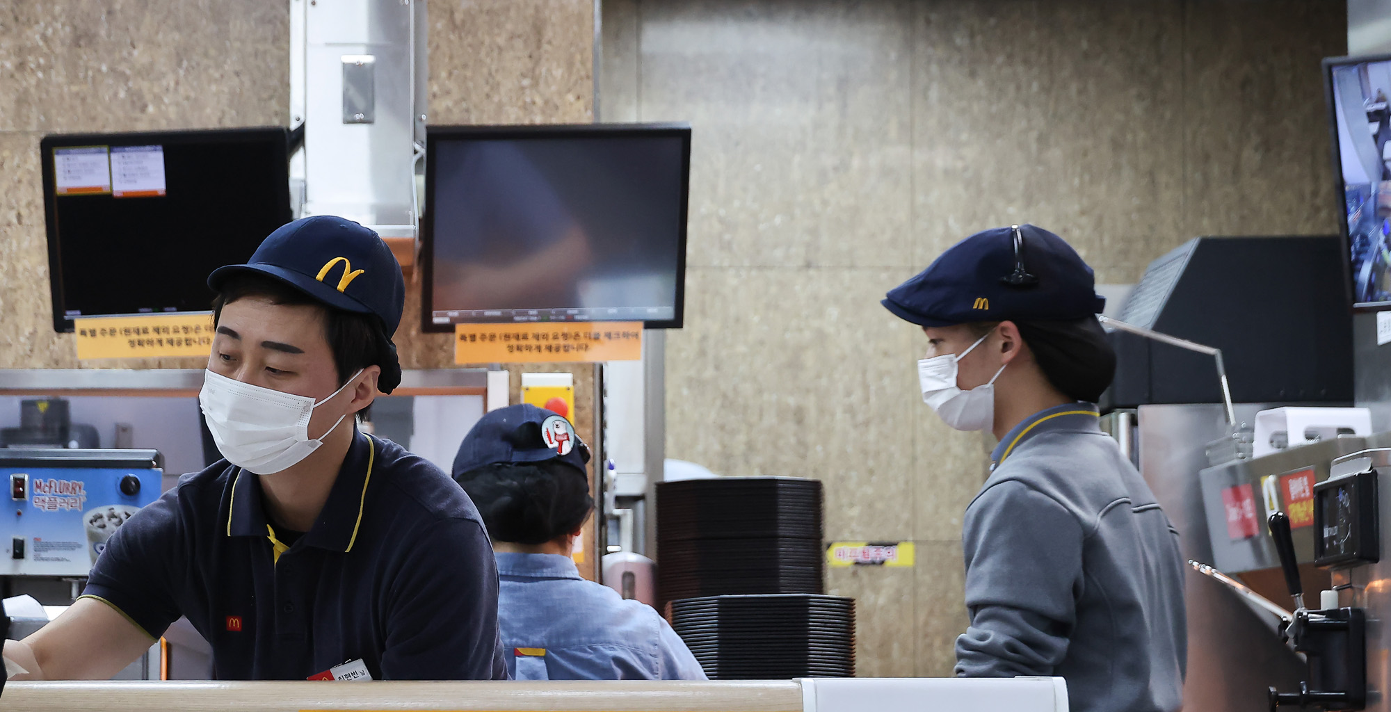 [eoimage=서울] 임준선 기자 =11일 서울 중구 을지로에 위치한 맥도날드 프랜차이즈 매장에서 일하는 알바생들이 일을 하고 있다. ( 사진 사용시 필히 상호 와 인물 모자이크 요망.) 2025.12.02