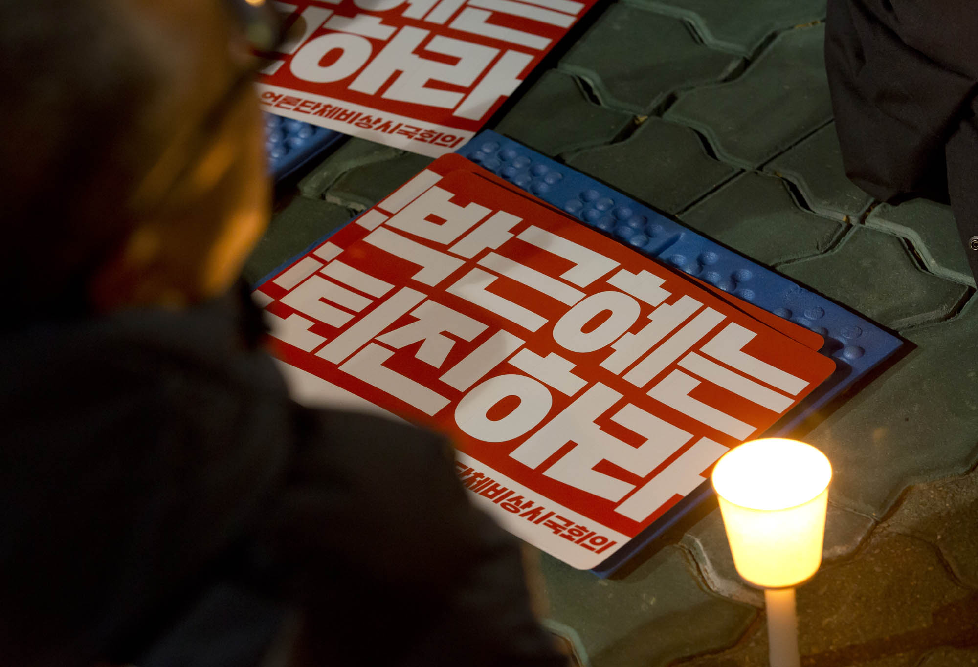 [서울=eoimage] 임준선기자 =24일 오후 여의도 KBS 본관 앞에서 박근혜정권퇴진비상국민행동이 주최하고 언론단체비상시국회의가 주관하는 '박근혜 끄고 공정방송켜자' 촛불문화제가 열리고 있다.