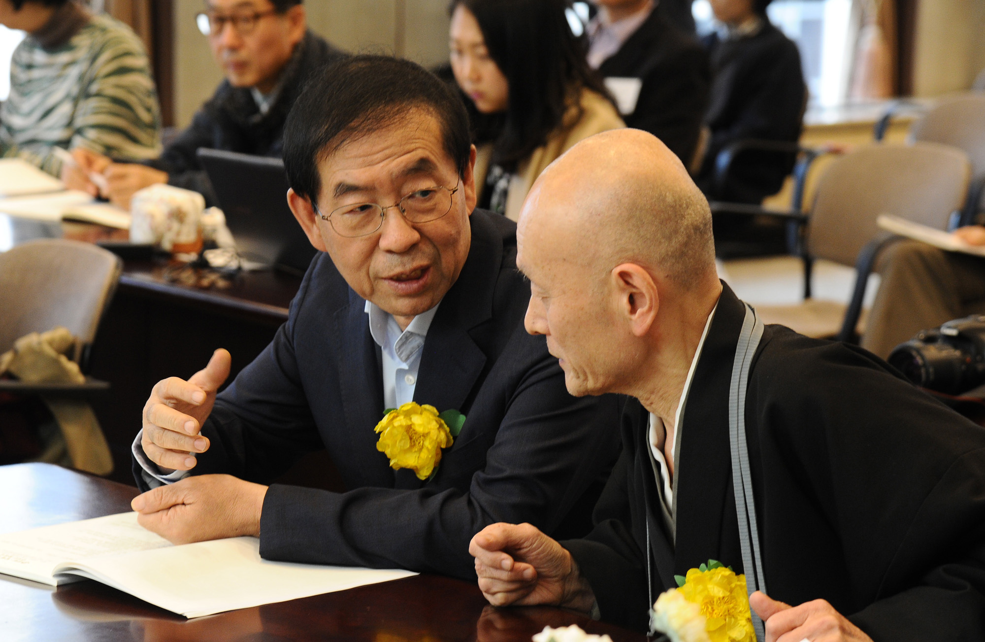 박원순 서울시장이 21일 한국프레스센터 19층 기자회견장에서 탈핵?생명 실크로드 준비단 주최로 열린 출범식에 참석해 축사하고 있다. 서울시 제공