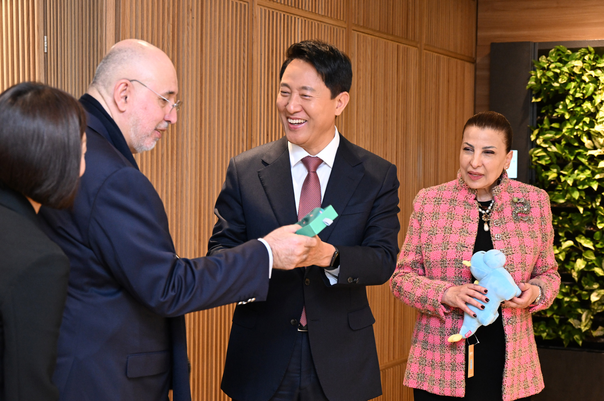 오세훈 서울시장은 16일(화) 오전 서울시청 집무실에서 아부다비 음악예술재단(ADMAF) 후다 알카미스 카누(Huda Alkhamis ?Kanoo) 이사장을 만나 서울-아부다비 간 문화 분야 교류 협력 방안에 대해 논의했다. 서울시 제공