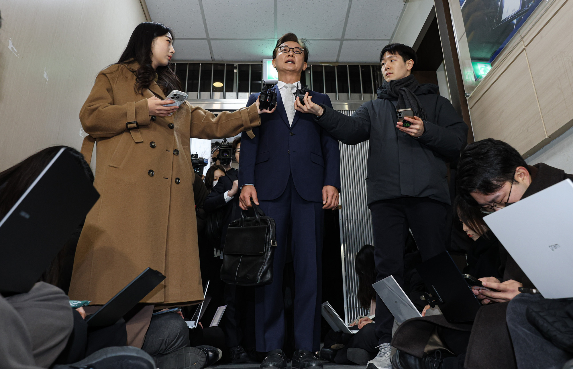 전재수 전 해양수산부 장관이 19일 오전 통일교 금품수수 의혹 관련 피의자 신분으로 서울 서대문구 경찰청에 출석하고 있다.