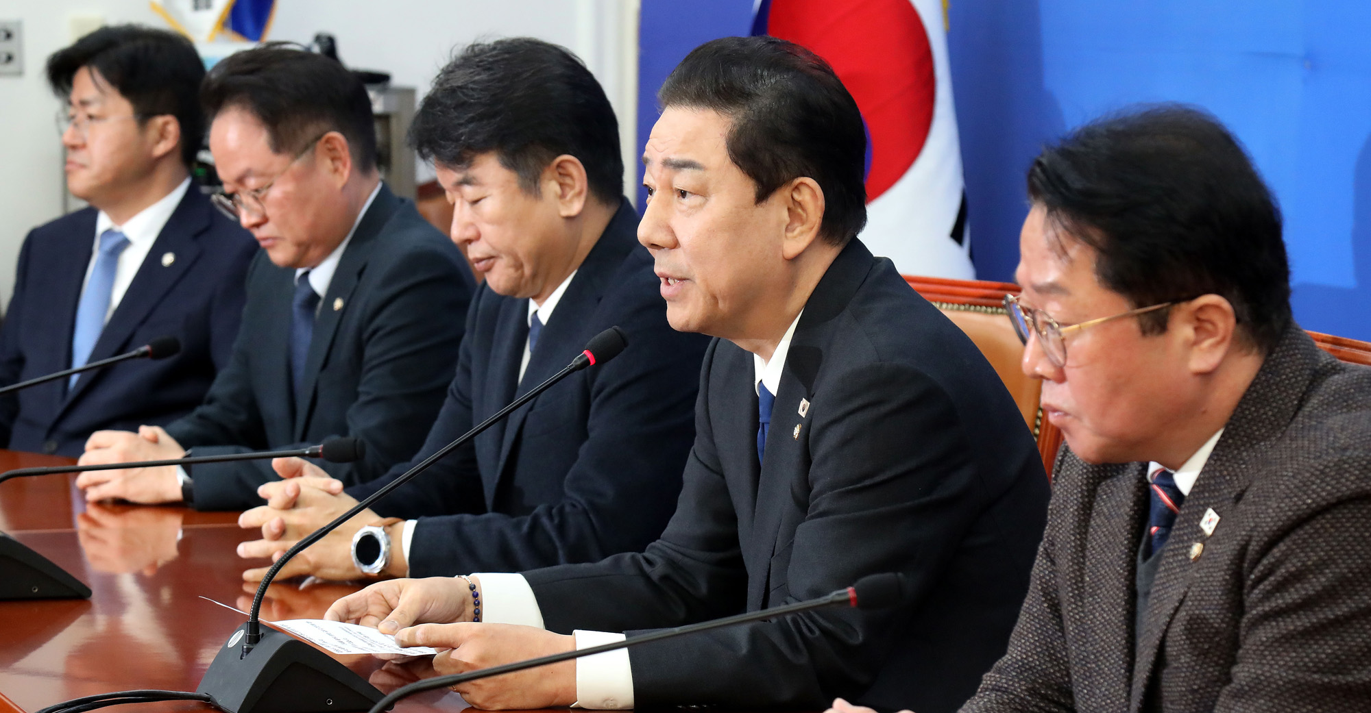 더불어민주당 김병기 원내대표가 30일 국회에서 열린 민주당 원내대책회의에서 본인 의혹 관련해 사퇴 의사를 밝히고 있다. 2025.12.30
