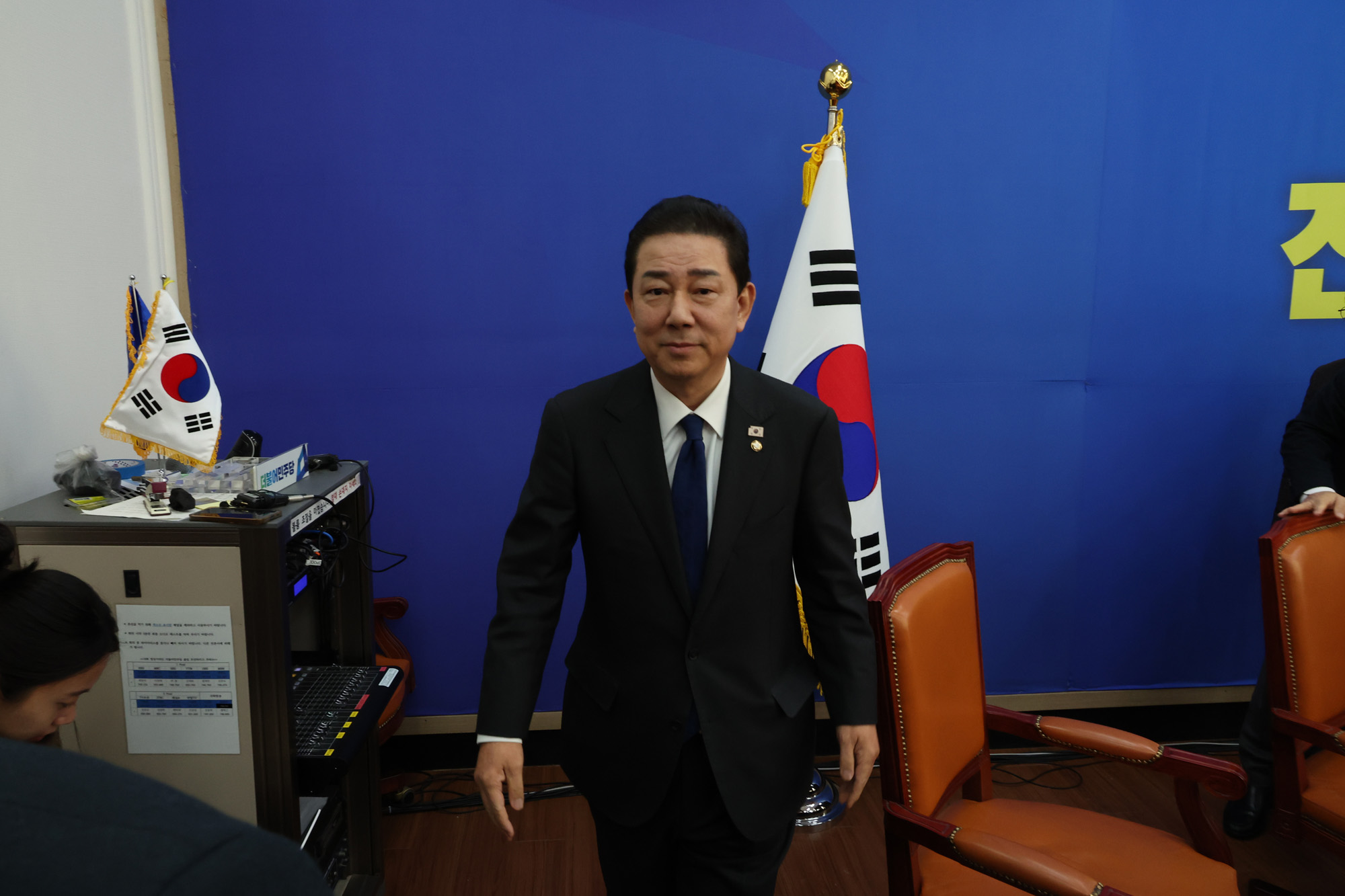 더불어민주당 김병기 원내대표가 30일 국회에서 열린 민주당 원내대책회의에서 본인 의혹 관련해 사퇴 의사를 밝힌 뒤 회견장을 떠나고 있다. 2025.12.30