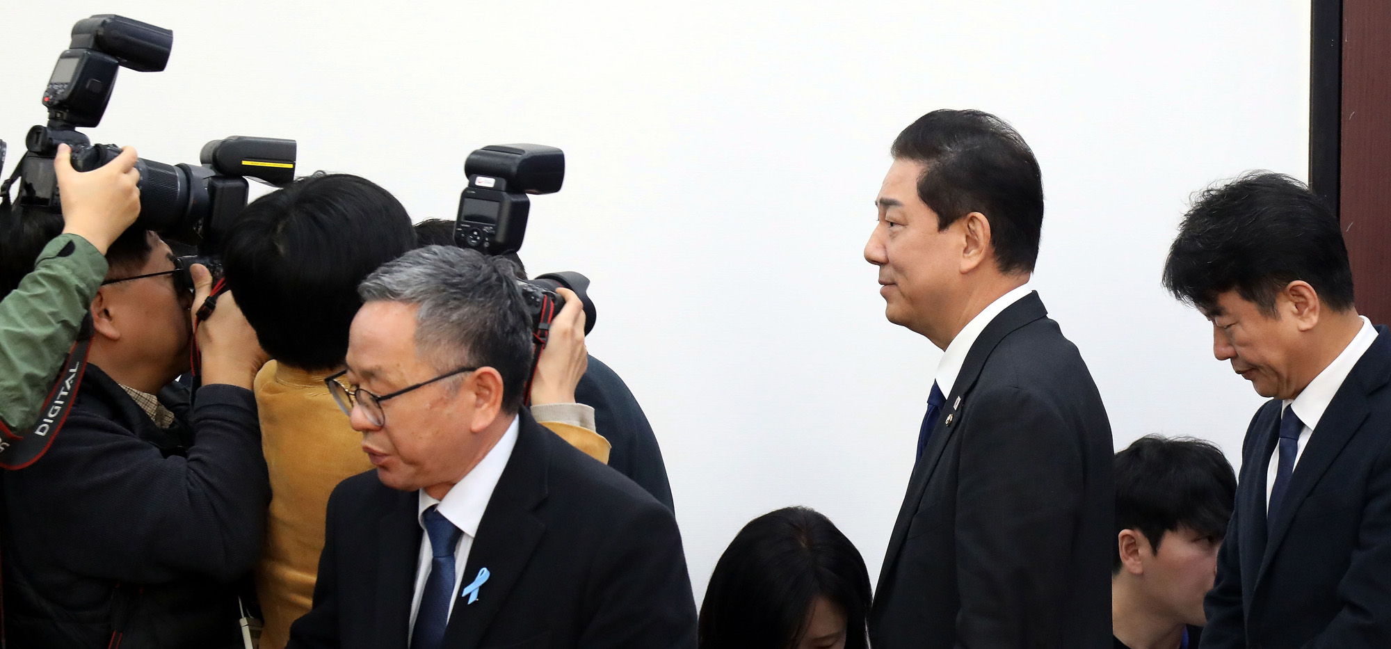 더불어민주당 김병기 원내대표가 30일 국회에서 열린 민주당 원내대책회의에서 본인 의혹 관련해 사퇴 의사를 밝힌 뒤 회견장을 떠나고 있다. 2025.12.30
