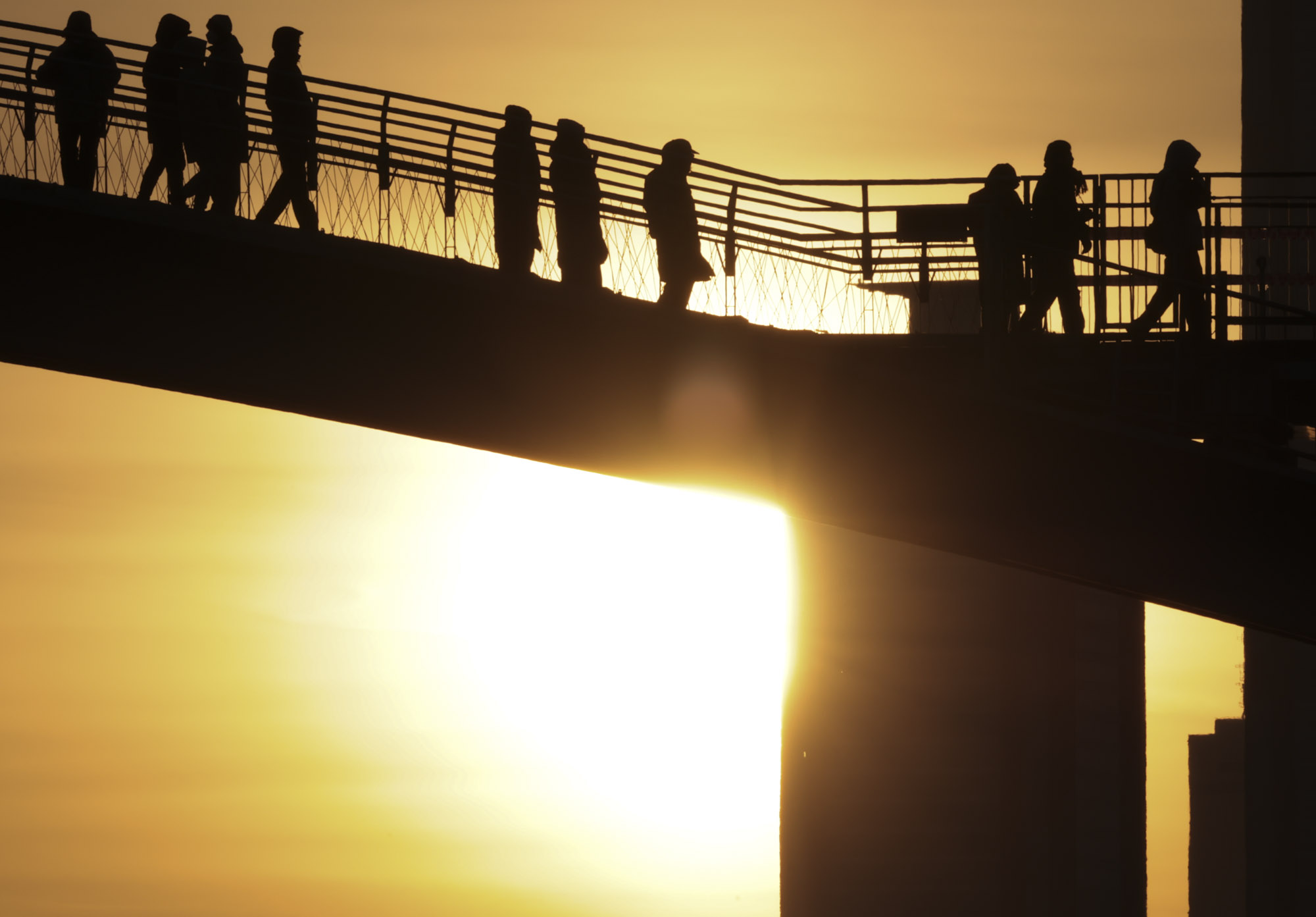 [eoimage=서울] 박정훈 기자= 2026년 병오년 새해 첫 날인 1일 오전 서울 영등포구 선유도 공원 선유교 뒤로 새해 첫 해가 떠오르고 있다. 2026.1.1.