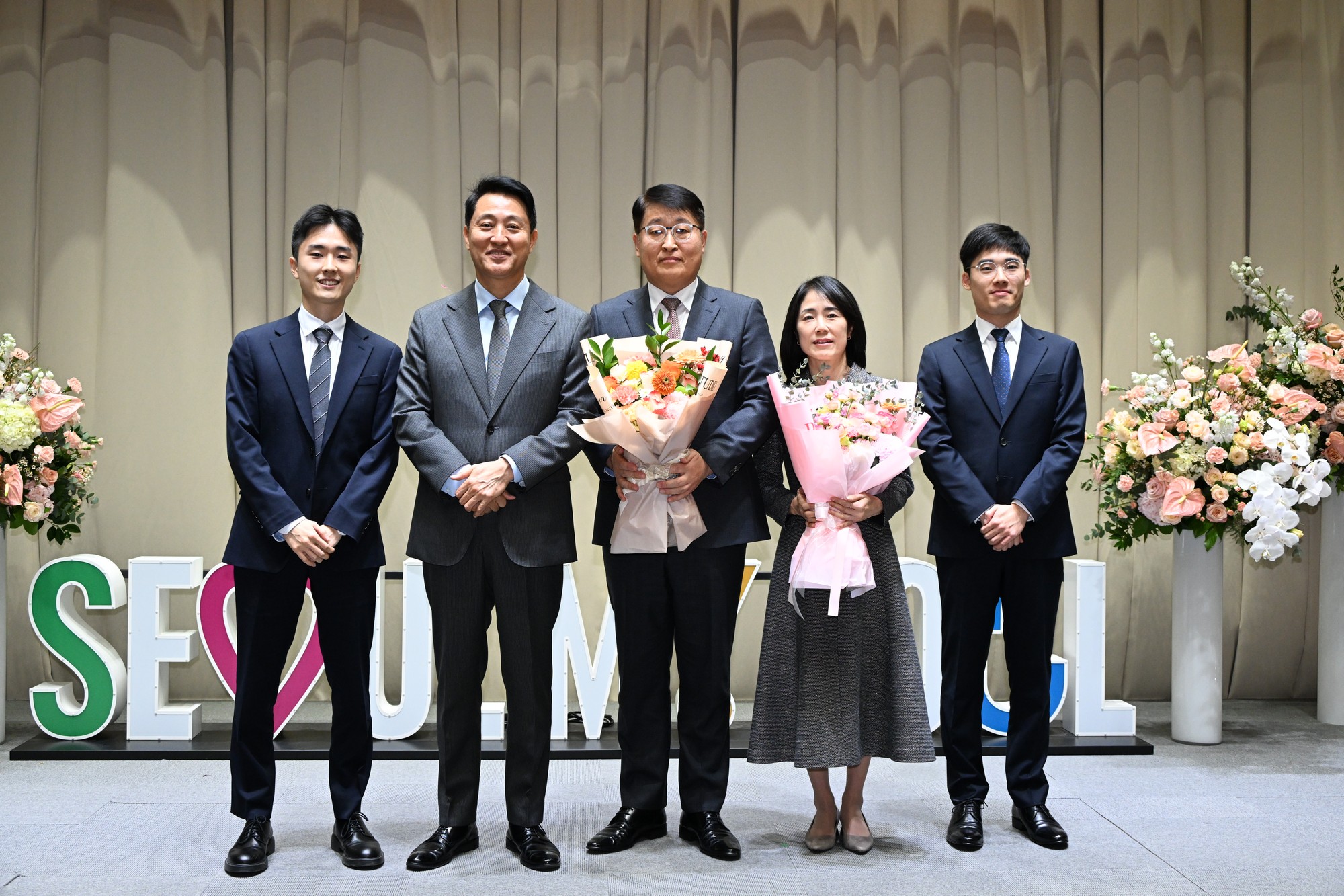 오세훈 서울시장은 30일(화) 오후 5시 서울시청 3층 대회의실에서 열린 ‘김태균 행정1부시장 이임식’에 참석해 30여 년간 서울시 발전에 헌신한 김 부시장의 이임을 축하했다. 서울시 제공