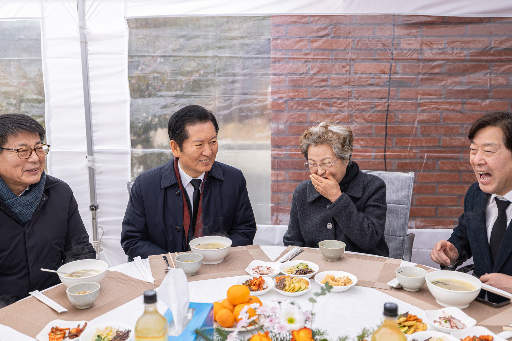 1일 더불어민주당 정청래 대표를 비롯한 지도부들이 노무현 전 대통령 묘역을 방문해 참배하고 권양숙 여사를 예방하고 있다. 2026.01.01. 더불어민주당 제공
