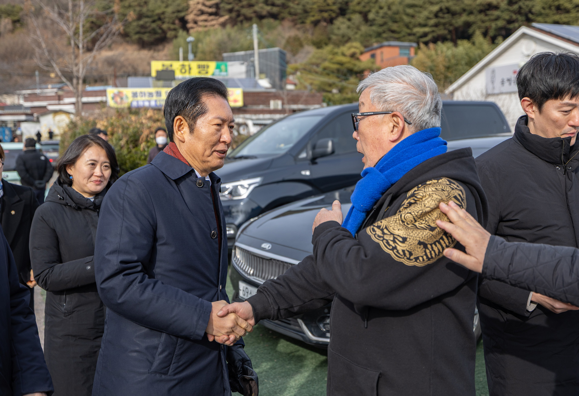 1일 더불어민주당 정청래 대표를 비롯한 지도부들이 노무현 전 대통령 묘역을 방문해 참배하고 권양숙 여사를 예방하고 있다. 2026.01.01. 더불어민주당 제공