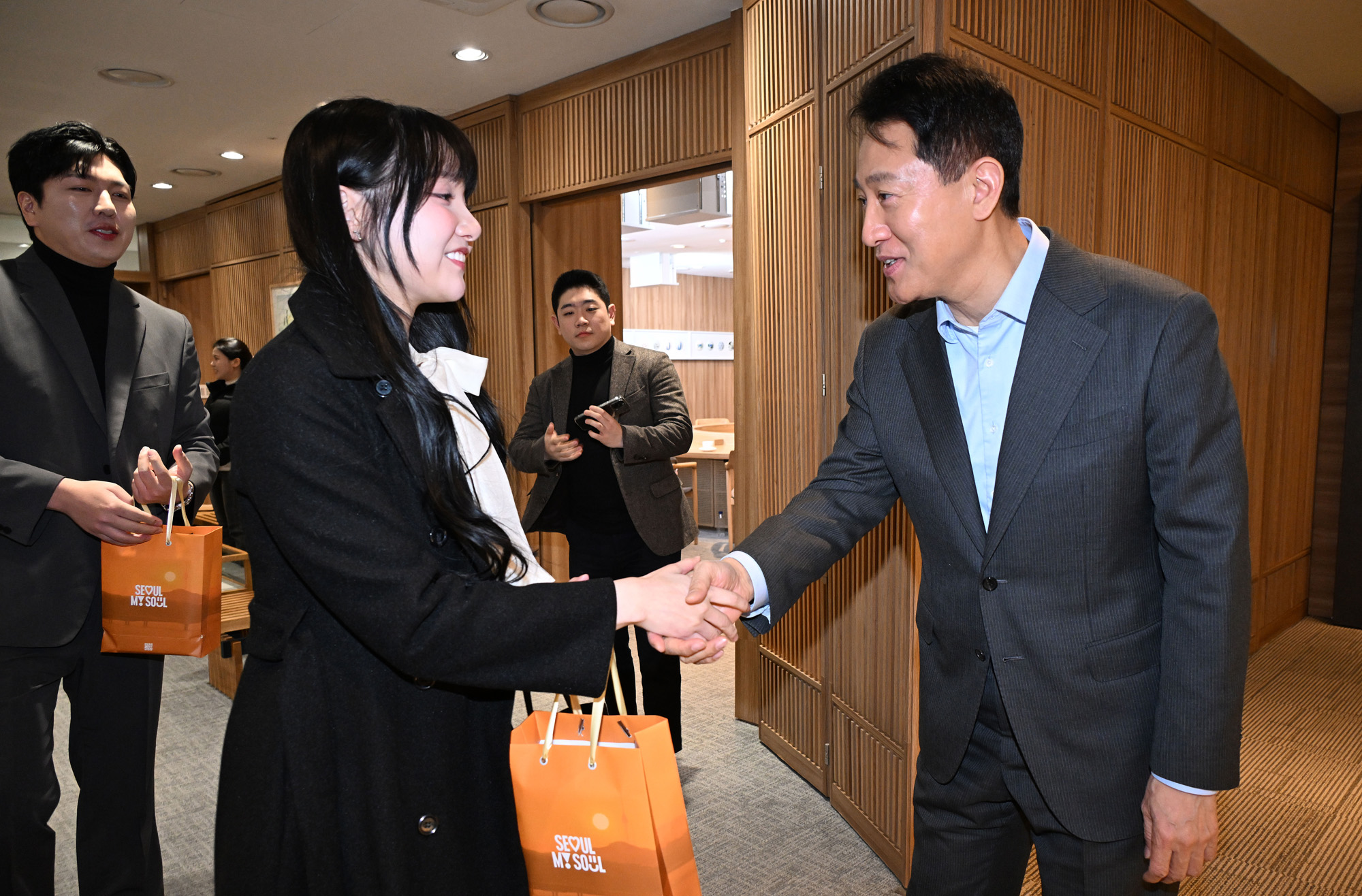 | 사진설명 | 오세훈 서울시장은 2일(금) 오후 4시 서울시청 집무실에서 지난해 12.29.(월)부터 사흘간 DDP 일대에서 열린 ‘2025 서울콘’ 참가 인플루언서 6인을 만나 참신한 콘텐츠로 ‘서울’을 널리 알려준 데 감사를 전하고, 전 세계에 ‘매력도시 서울’을 홍보하기 위한 아이디어를 청취했다. 이날 면담에는 ?SNS 팔로어 2,200만 명의 인도네시아 인플루언서 아이린 수완디(Irene Suwandi) ?필리핀 배우이자 인플루언서 엘라(ella cuz, 팔로어 2,236만)와 ‘서울콘 APAN 스타어워즈 글로벌 인플루언서상’을 수상한 ?김프로(팔로어 1억3,161만 명) ?유백합(팔로어 3,588만 명) 등이 참석해 오 시장과 ‘서울’의 매력에 대해 이야기 나눴다. 서울시 제공 |