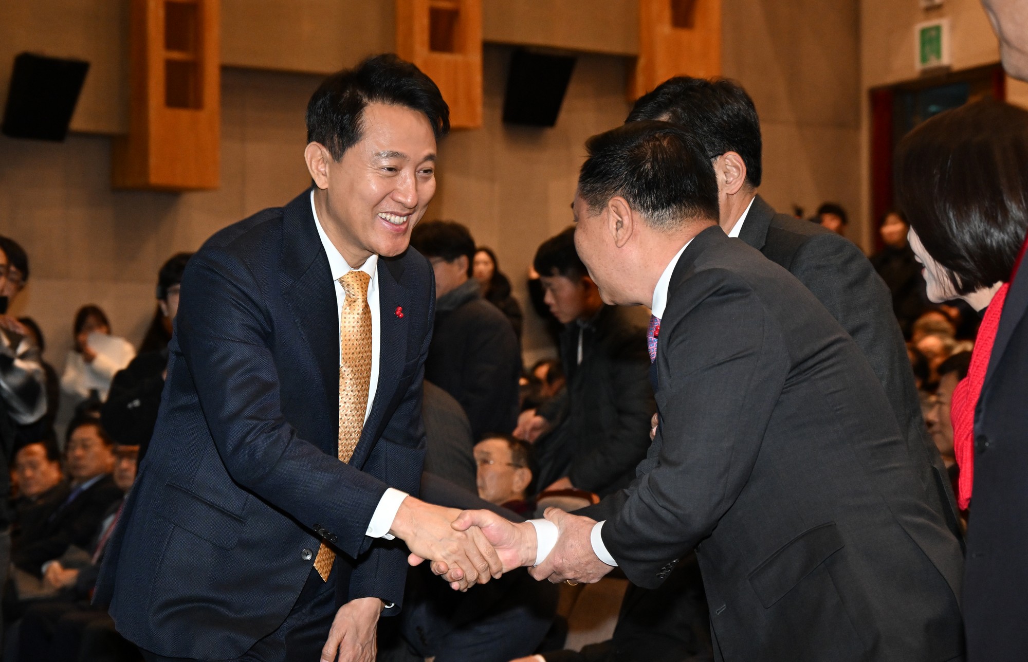 | 사진설명 | 오세훈 서울시장이 7일(수) 오후 양천구와 마포구에 열린 ‘신년인사회’에 차례로 참석해 시정 운영 방향을 소개하고 지역주민과 소통했다. 이 자리에서 오 시장은 자치구별 현안을 논의하고 서울시가 핵심적으로 추진하고 있는 ’손목닥터9988‘과 ’서울체력9988인증센터‘, ’서울야외도서관‘ 등 시민체감형 정책도 공유했다. 서울시 제공 |