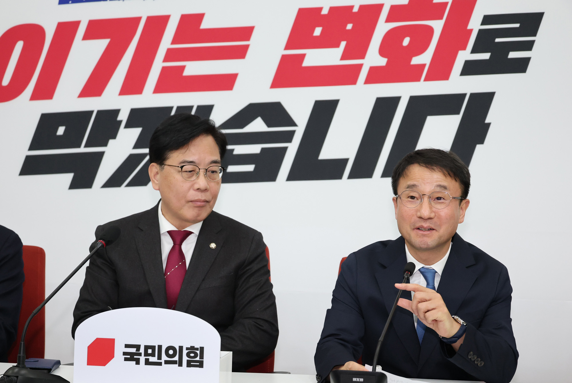 한병도 신임 더불어민주당 원내대표(오른쪽)가 12일 국회 국민의힘 원내대표실에서 송언석 국민의힘 원내대표를 예방한 자리에서 발언하고 있다. 2026.1.12