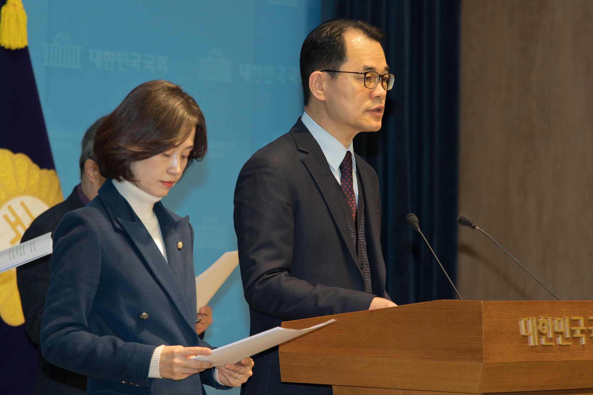 | 사진설명 | [Eoimage=서울] 이종현 기자 = 검찰개혁 방향을 두고 정부와 여당을 비롯한 정치권의 의견이 갈리고 있는 14일 국회 소통관에서 조국혁신당 박은정 의원의 주선으로 검찰개혁 추진단 자문위원으로 참석했던 6명의 법조인과 교수들(서보학 교수, 김필성 변호사, 한동수 변호사, 장범식 변호사, 황문규 교수, 김성진 변호사 등 6명)이 자문위원 사퇴 기자회견을 하고 있다. 2025.01.14. eomaster@eoimage.com |