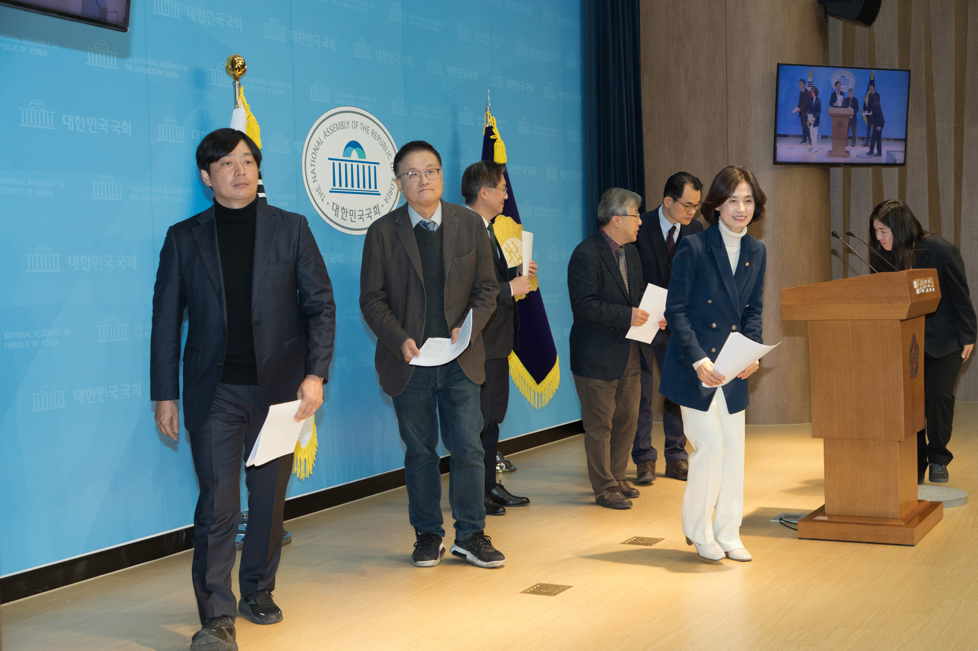 | 사진설명 | [Eoimage=서울] 이종현 기자 = 검찰개혁 방향을 두고 정부와 여당을 비롯한 정치권의 의견이 갈리고 있는 14일 국회 소통관에서 조국혁신당 박은정 의원의 주선으로 검찰개혁 추진단 자문위원으로 참석했던 6명의 법조인과 교수들(서보학 교수, 김필성 변호사, 한동수 변호사, 장범식 변호사, 황문규 교수, 김성진 변호사 등 6명)이 자문위원 사퇴 기자회견을 하고 있다. 2025.01.14. eomaster@eoimage.com |