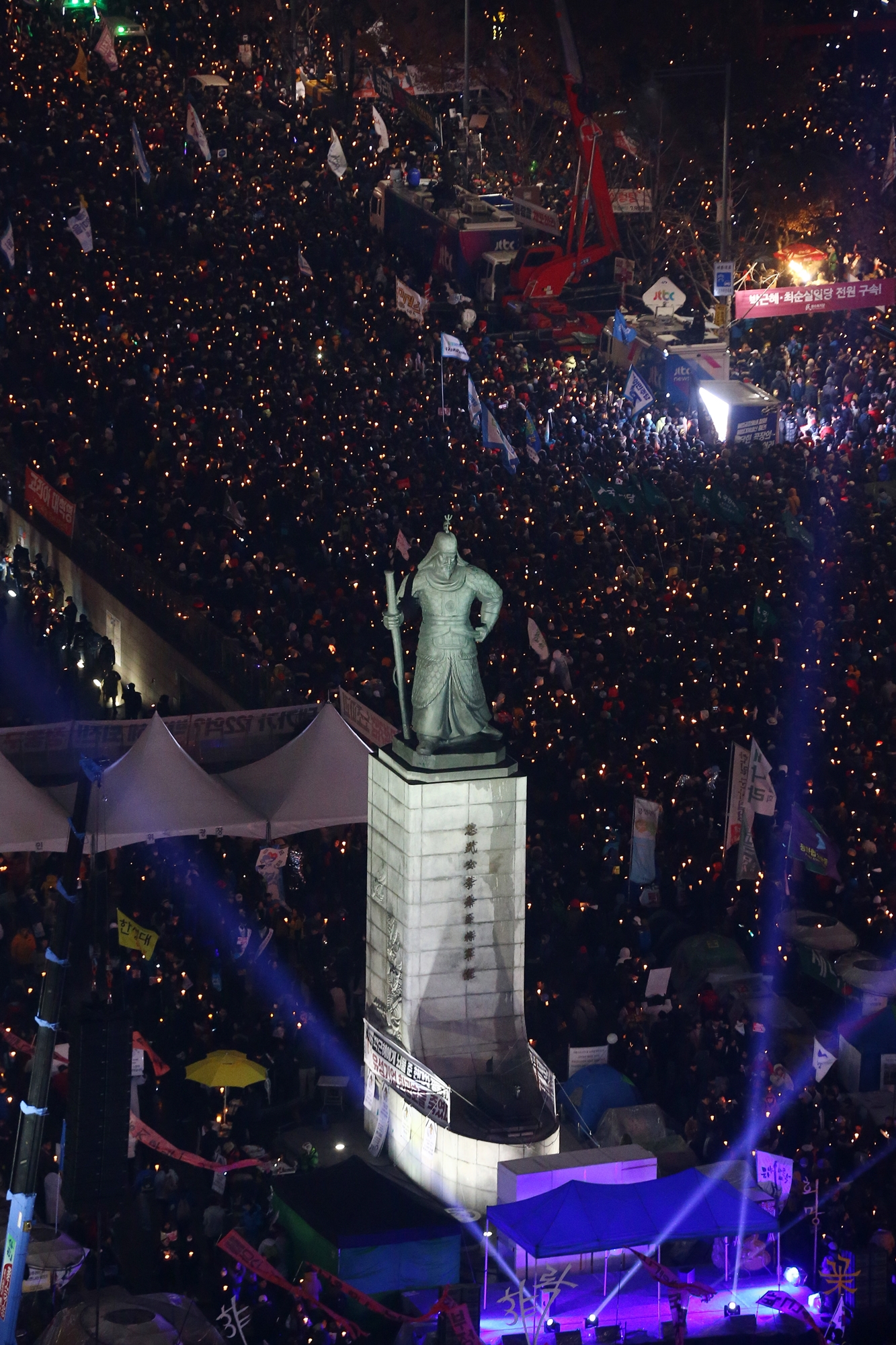박근혜 대통령의 퇴진을 촉구하는 시민들의 요구가 거세지고 있는 가운데 26일 오후 서울 광화문 세종대로 일대에서 박 대통령의 퇴진을 촉구하며 시민들이 촛불집회를 갖고 있다. 20161126 사진공동취재단