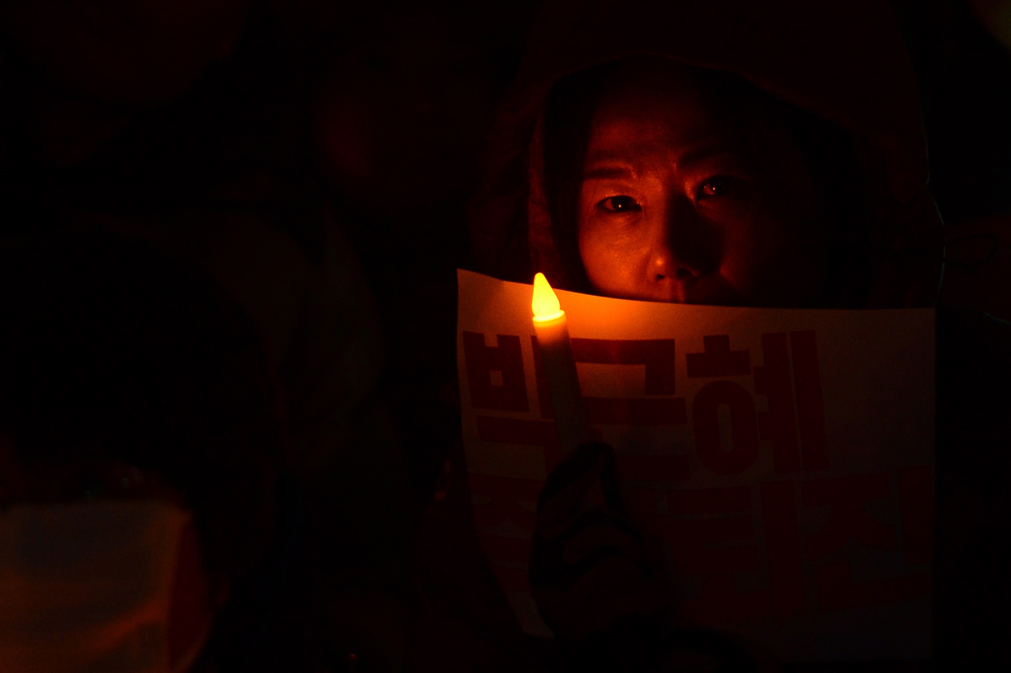26일 오후 서울 광화문광장에서 5차 촛불집회가 열린 가운데 집회 참가자가 촛불을 들고 있다. 20161126 사진공동취재단