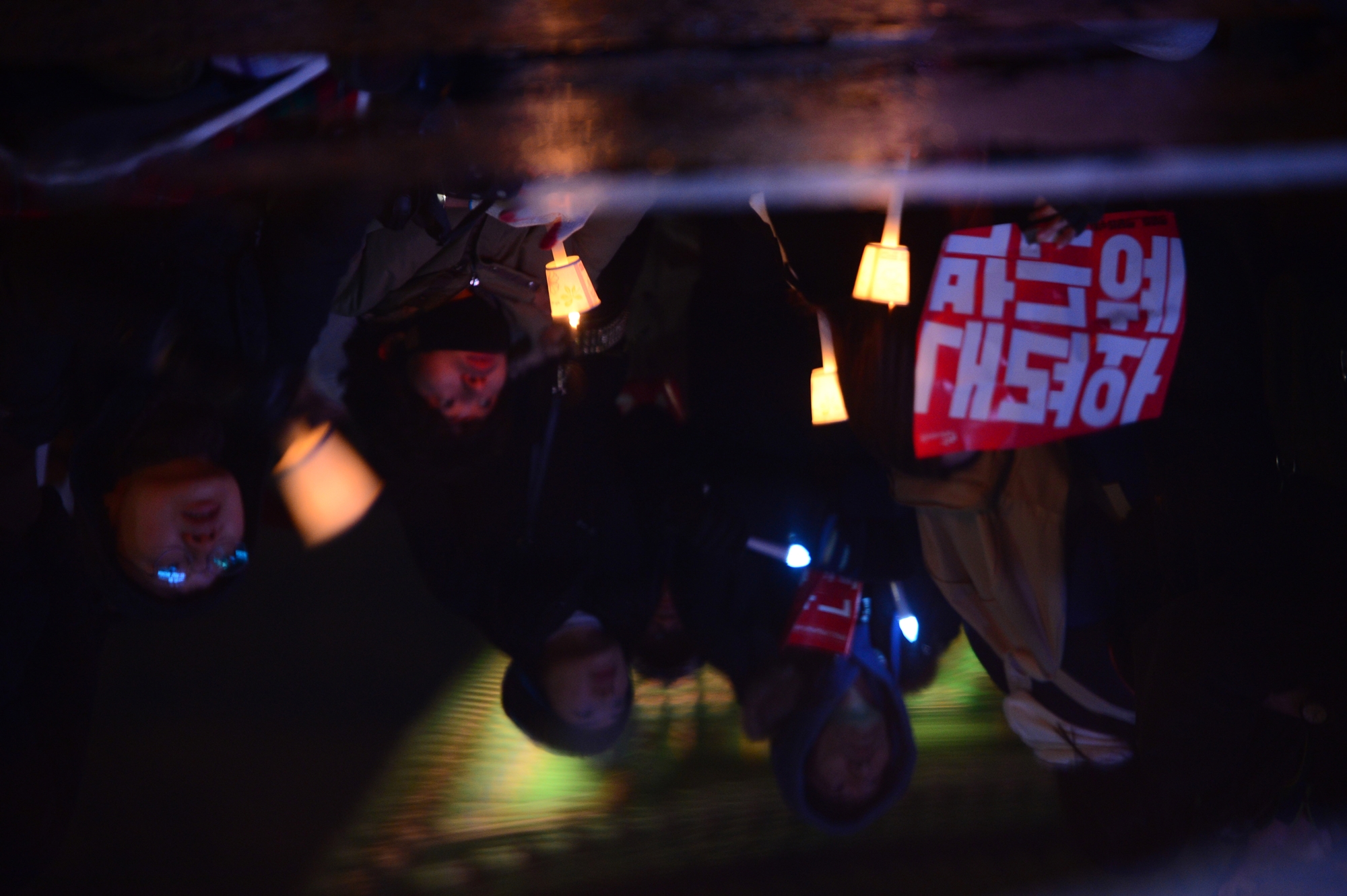 26일 오후 서울 광화문광장에서 5차 촛불집회가 열린 가운데 촛불 든 참가자들의 모습이 녹은 눈에 반영되고 있다. 20161126 사진공동취재단