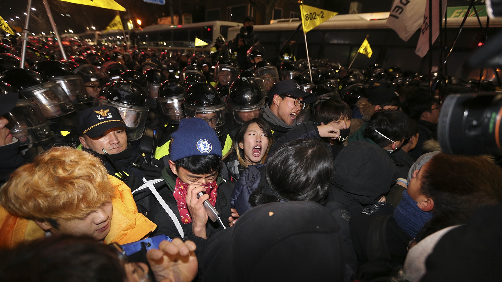 박근혜 대통령의 퇴진을 촉구하는 5차 촛불집회가 열린 26일 오후 서울 종로구 청운효자동 주민센터 인근에서 경찰과 시민이 대립하고 있다. 20161126 사진공동취재단