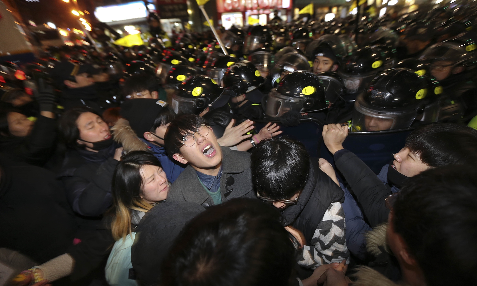 박근혜 대통령의 퇴진을 촉구하는 5차 촛불집회가 열린 26일 오후 서울 종로구 청운효자동 주민센터 인근에서 경찰과 시민이 대립하고 있다. 20161126 사진공동취재단