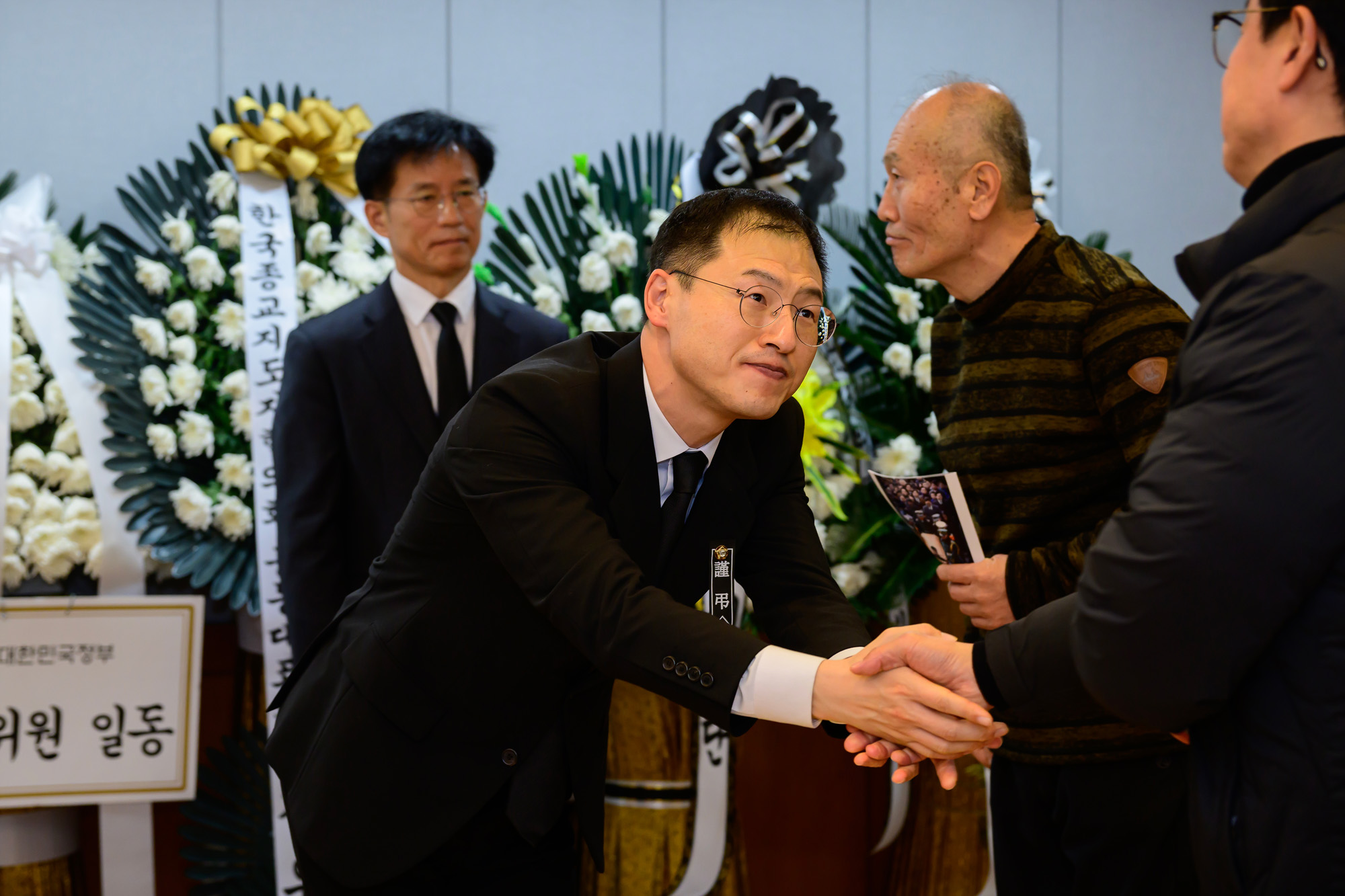 30일 오후 서울 종로구 서울대학교병원 장례식장에 마련된 고 이해찬 전 국무총리의 빈소에서 더불어민주당 김상욱 의원이 조문객을 맞이하고 있다. 2026.01.30 사진공동취재단