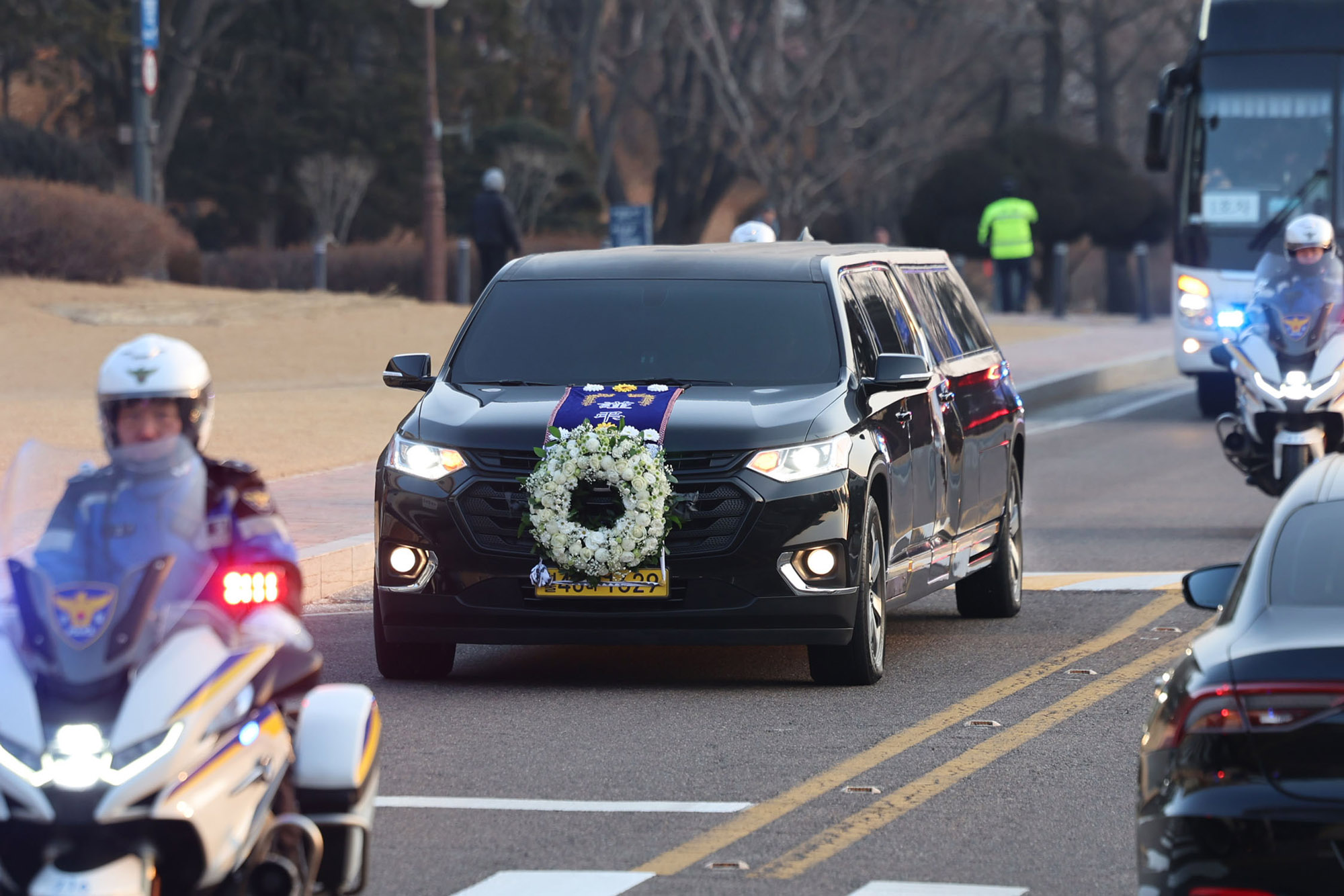 31일 오전 고(故) 이해찬 전 국무총리의 운구차량이 서울 여의도 국회로 진입하고 있다. 2026.01.31.
