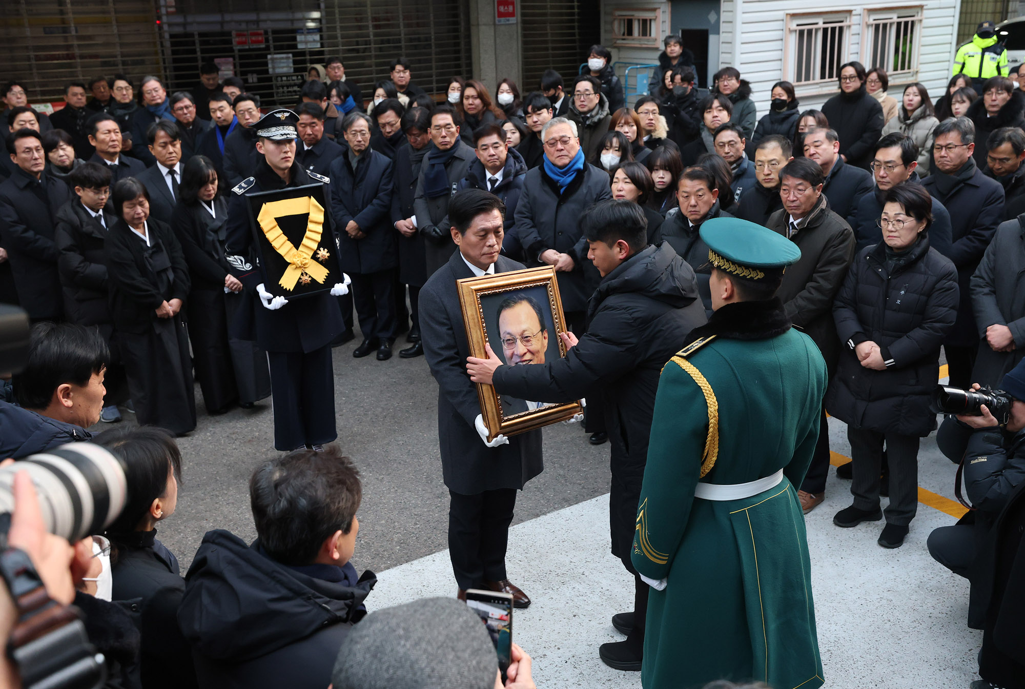 고 이해찬 전 총리의 영정이 31일 서울 영등포구 더불어민주당 당사를 나서고 있다. 2026.1.31