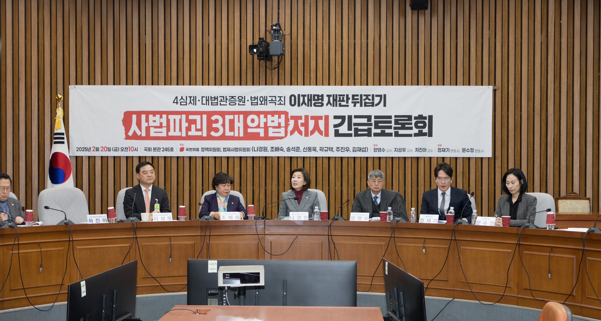 [Eoimage=서울] 이종현 기자 = 20일 오전 국민의힘 나경원 의원, 조배숙 의원등이 참석한 가운데 사법파괴 3대악법 저지 긴급토론회가 국회에서 열리고 있다. 2026.02.20. eomaster@eoimage.com