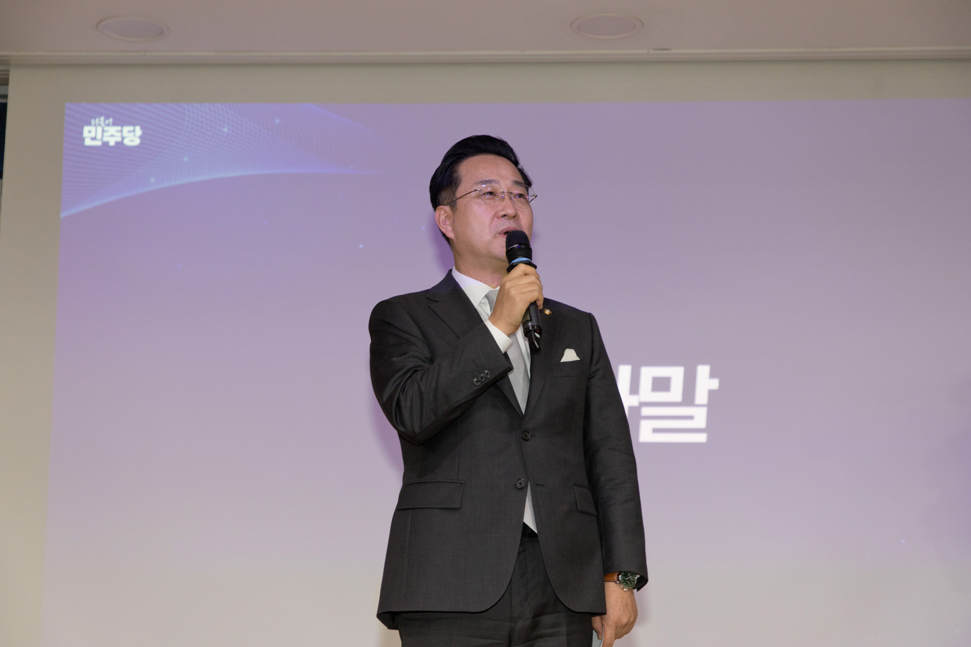 | 사진설명 | [Eoimage=서울] 이종현 기자 = 23일 서울 여의도 국회 의원회관에서 열린 더불어민주당 이재명 대통령 사건 공소취소와 국정조사 추진을 위한 의원모임 출범식·결의대회에 60여명의 의원들이 참석해 손팻말을 들고 있다. 박성준 공동대표가 발언하고 있다. 2026.2.23 eomaster@eoimage.com |