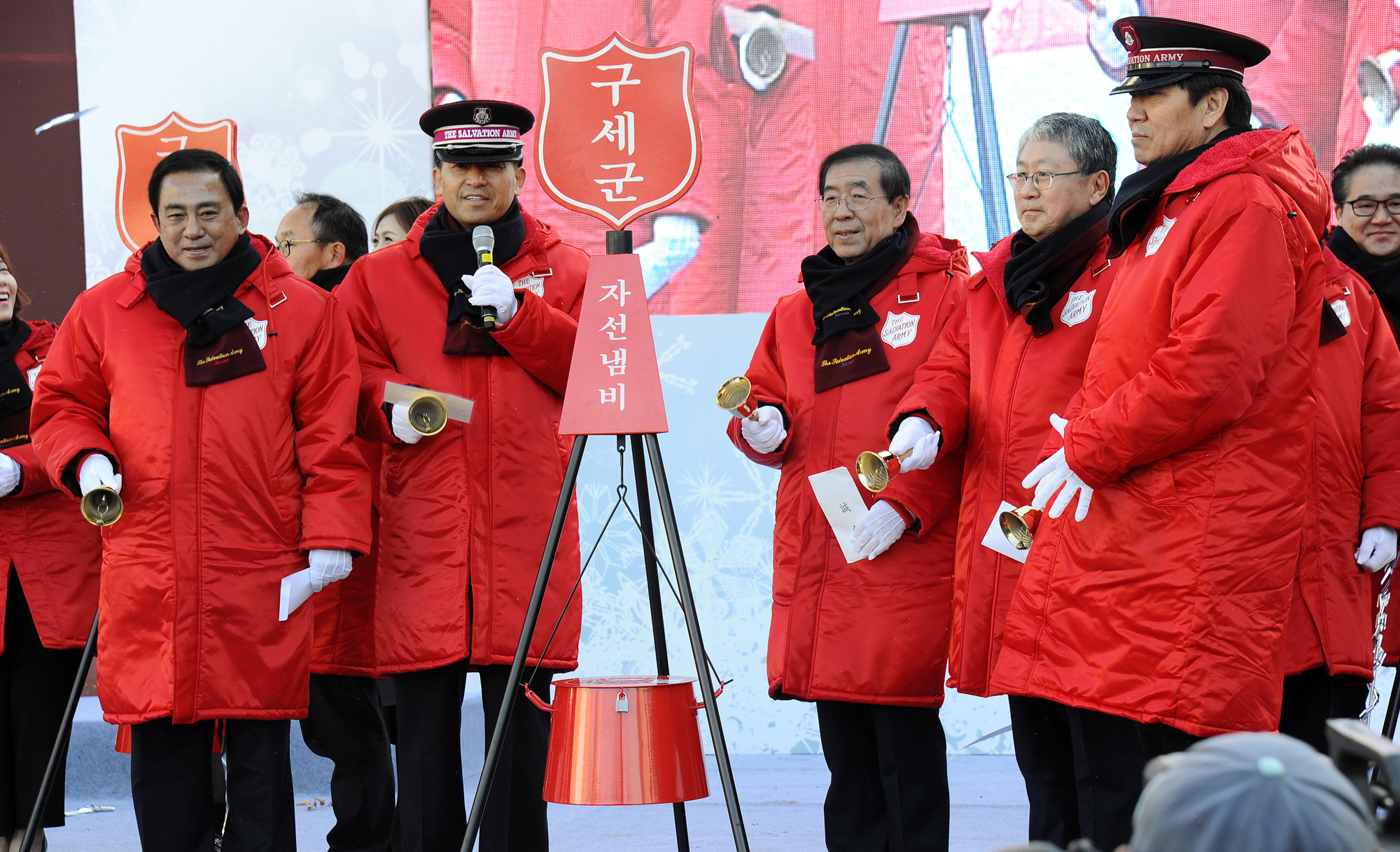 박원순 서울시장이 1일 오전 서울 시청광장에서 열린 '구세군 2016 자선냄비시종식' 행사에 참석해 자선냄비에 헌금하고 있다. 서울시 제공
