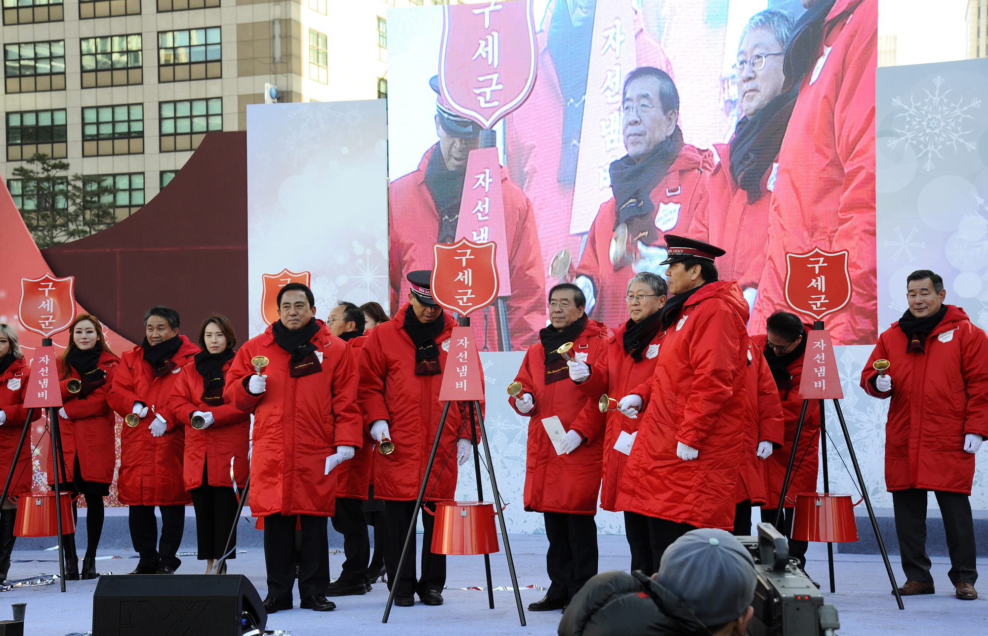 박원순 서울시장이 1일 오전 서울 시청광장에서 열린 '구세군 2016 자선냄비시종식' 행사에 참석해 자선냄비에 헌금하고 있다. 서울시 제공