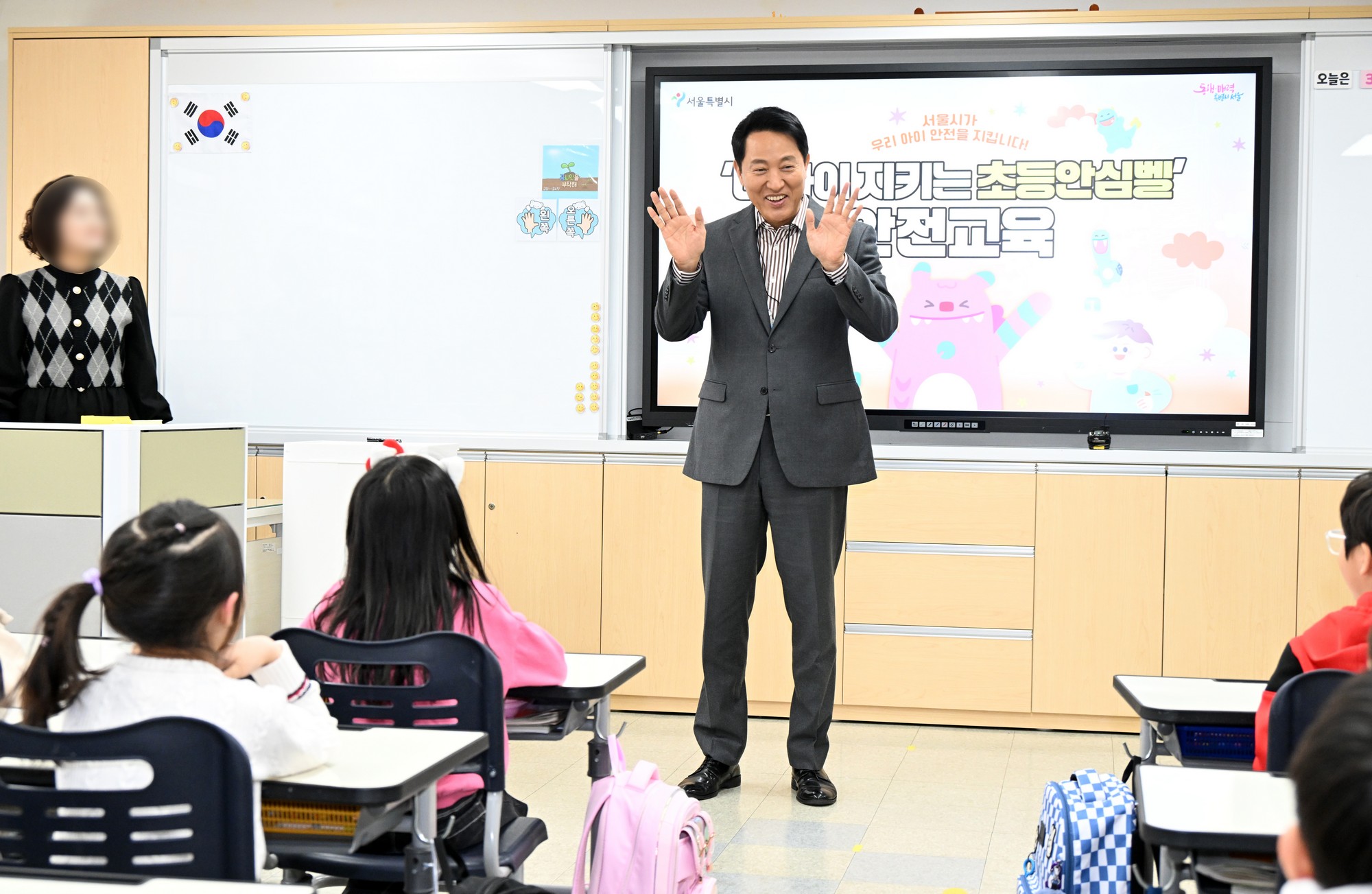 오세훈 서울시장은 13일(금) 오전 10시 30분 서울 소재 초등학교를 찾아 아동범죄 예방을 위해 초등학생들을 대상으로 서울시가 지급한 ‘내 아이를 지키는 초등안심벨’ 작동법을 직접 시연하고 교사, 학부모들과 함께 안심 등하굣길 조성방안 등을 모색했다. 서울시 제공
