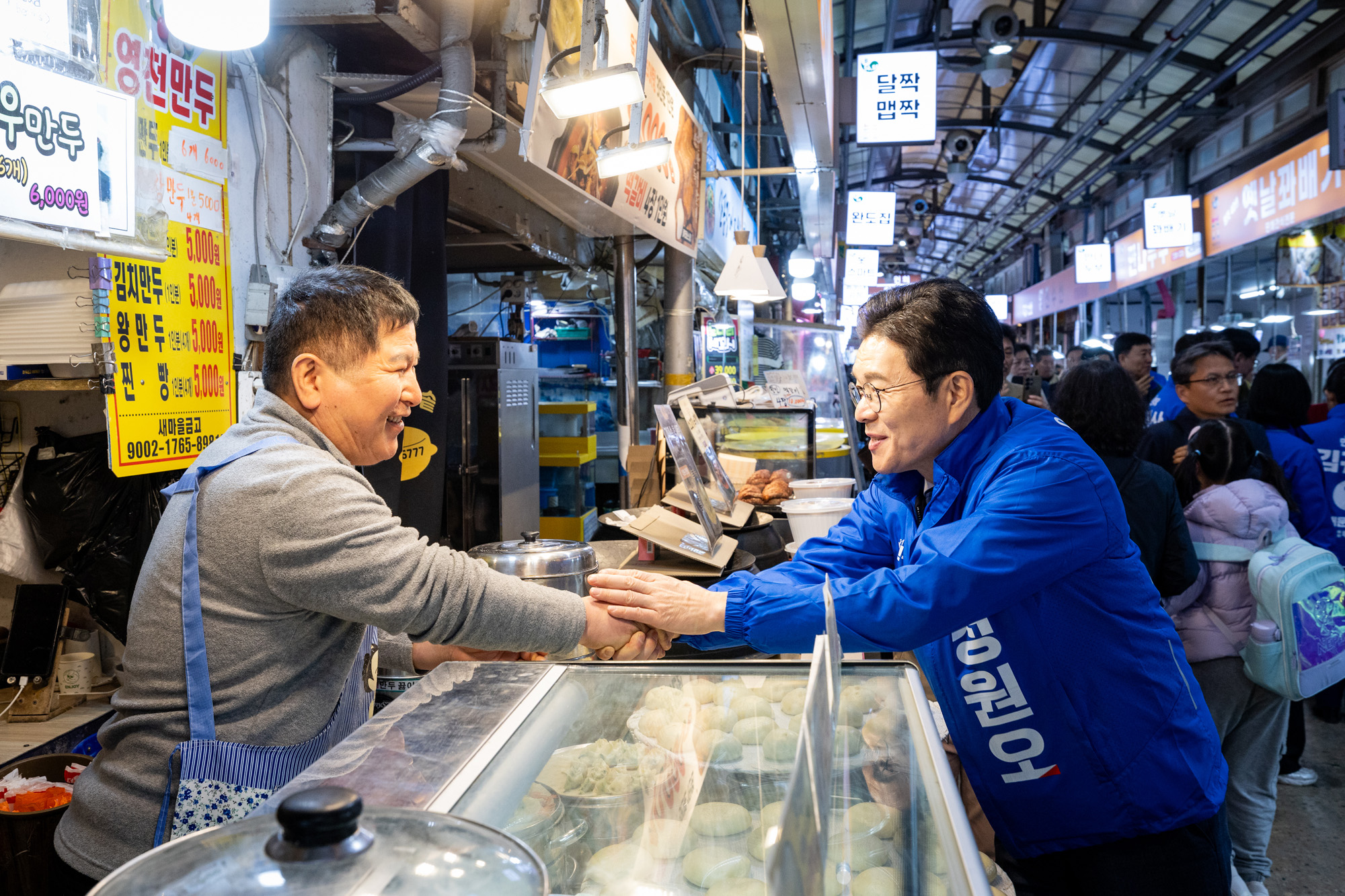 2026년 4월 8일 17시 서대문구 영천시장에서 더불어민주당 서울시장 예비후보 정원오 후보가 서대문 하나씩 착착유세를 하고 있다.