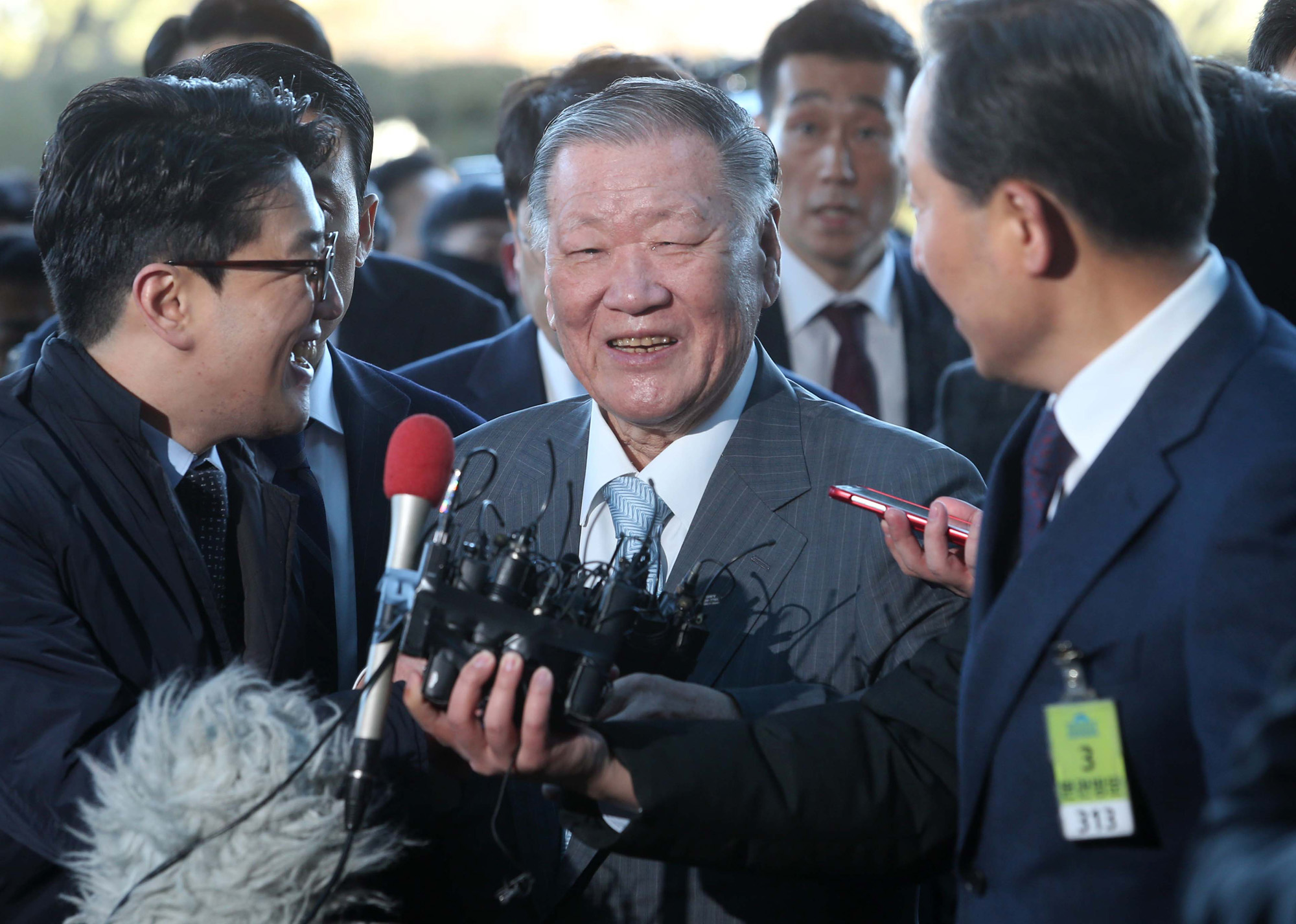 정몽구 현대자동차그룹 회장이 6일 오전 국회에서 열린 '박근혜 정부의 최순실 등 민간인에 의한 국정농단 의혹 사건 진상 규명을 위한 국정조사 특별위원회'에 출석하기 위해 국회에 들어서고 있다.