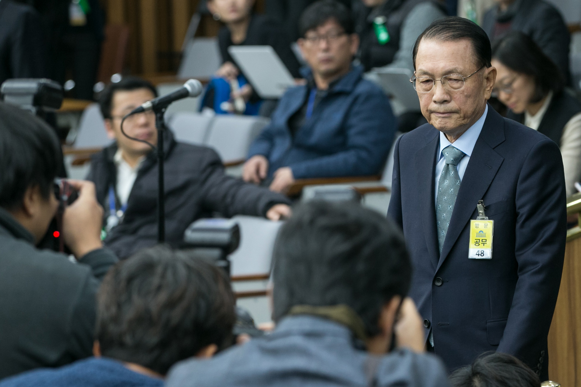 (서울=포커스뉴스) 김기춘 전 대통령비서실장이 7일 오전 서울 여의도 국회에서 열린 '박근혜 정부의 최순실 등 민간인에 의한 국정농단 의혹사건 진실규명을 위한 국정조사특위 제2차 청문회'에 출석하기 위해 청문회장으로 들어서고 있다. 161207 사진공동취재단 |