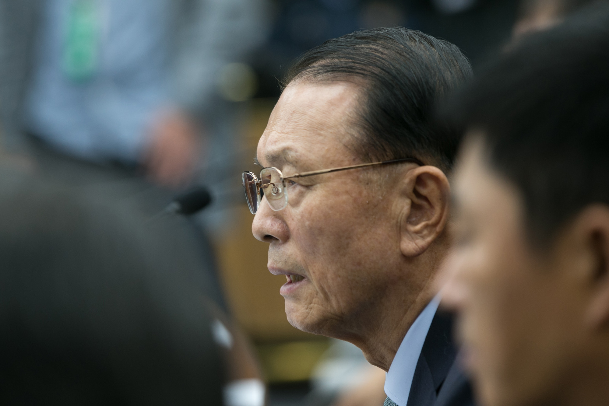 (서울=포커스뉴스) 김기춘 전 대통령비서실장이 7일 오전 서울 여의도 국회에서 열린 '박근혜 정부의 최순실 등 민간인에 의한 국정농단 의혹사건 진실규명을 위한 국정조사특위 제2차 청문회'에 출석해 의원질의에 답하고 있다. 161207 사진공동취재단 |