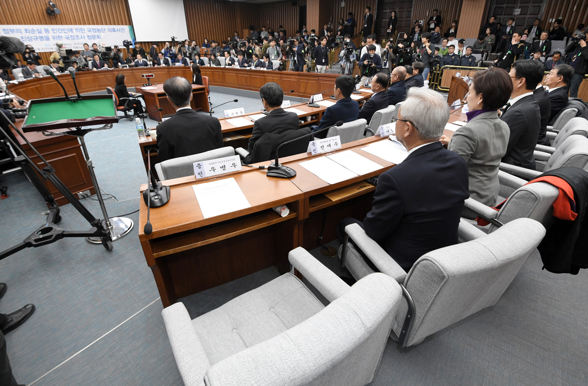7일 오전 서울 여의도 국회에서 열린 '박근혜 정부의 최순실 등 민간인에 의한 국정농단 의혹사건 진상규명을 위한 국정조사특별위원회' 2차 청문회에 불출석한 우병우 전 청와대 민정수석의 증인석이 비어있다. 161207 사진공동취재단 |